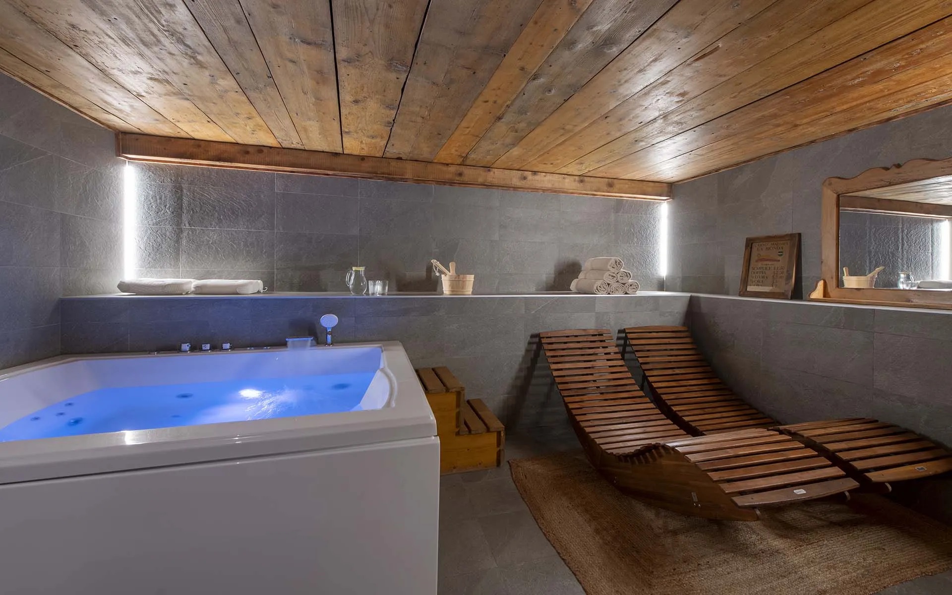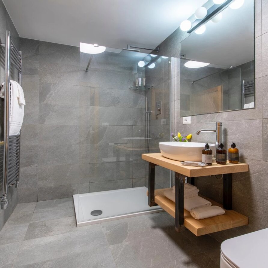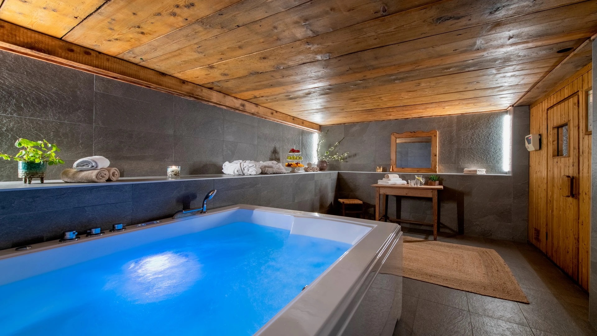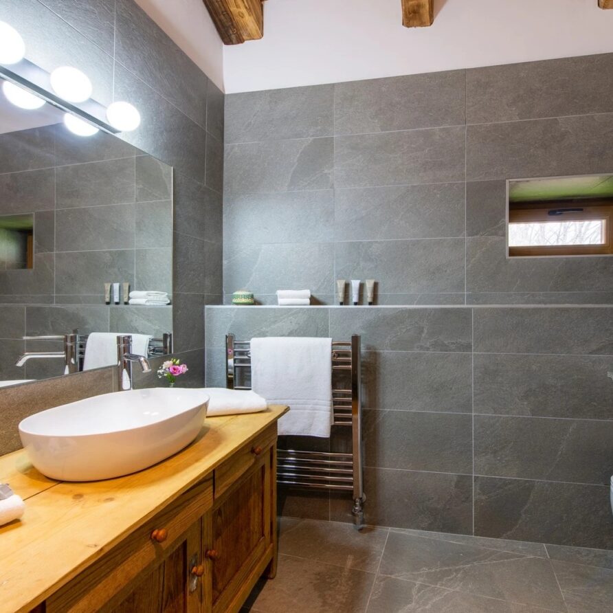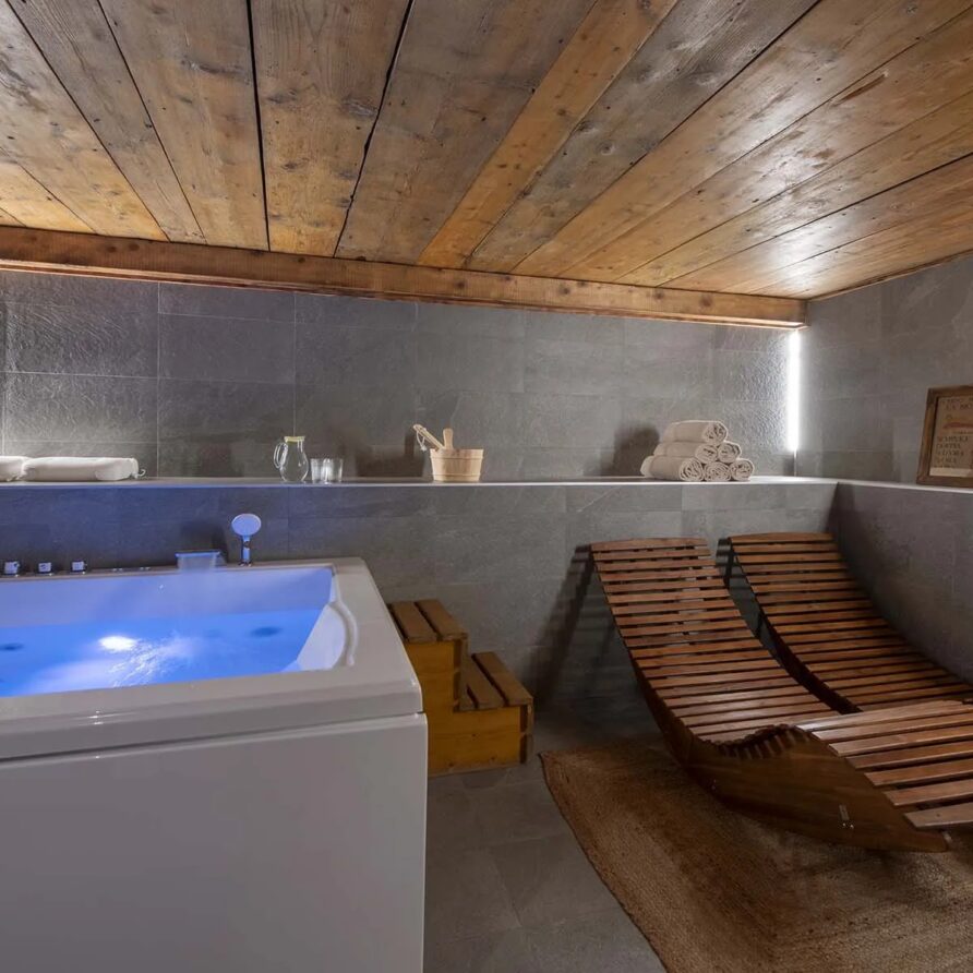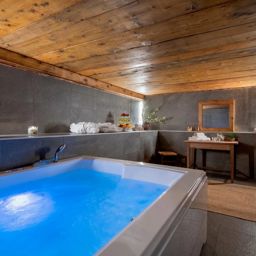 The spa, located on the lower ground floor of the chalet, provides the ultimate retreat for relaxation after a day on the slopes. It features an indoor Jacuzzi, ideal for soothing tired muscles and unwinding in complete comfort. The chalet provides practical facilities to enhance your stay. A well-equipped ski room ensures your gear is ready for the next day’s adventure, while private parking offers convenience for those arriving by car. The chalet also boasts laundry facilities.