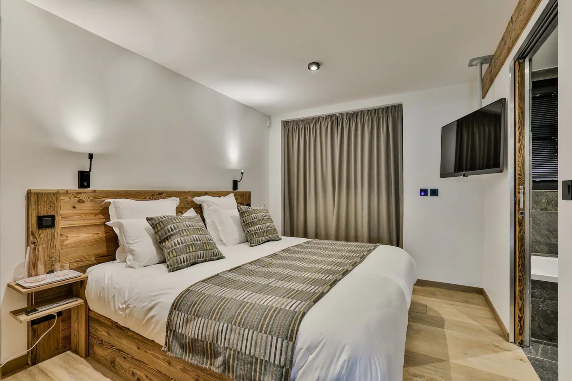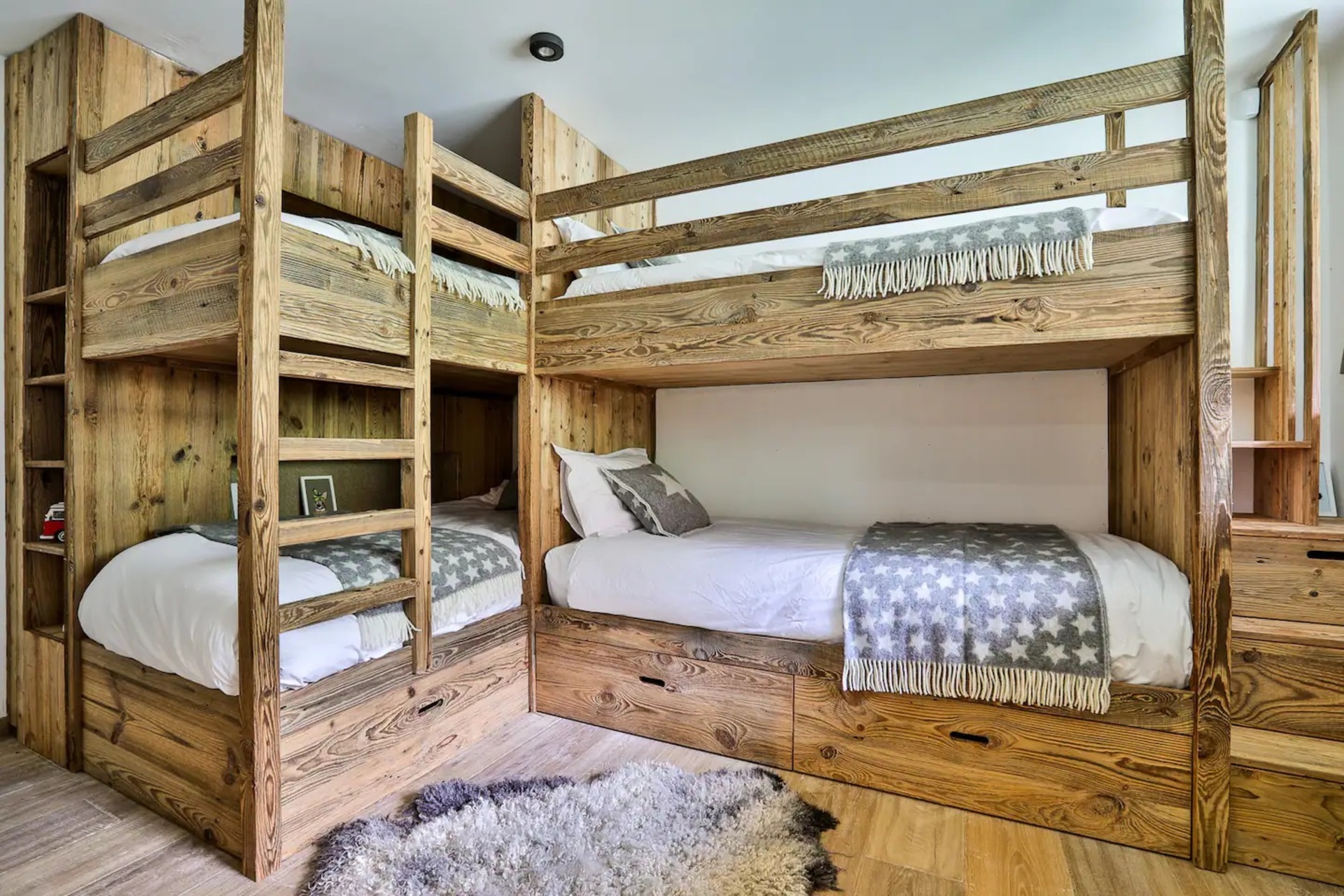 Luxury Chalet Annecy with pool provides 6 en-suite bedrooms, characterized by a similar modern alpine design and split between the ground and first floor. The property features five double bedrooms, two of which can also be organized as twins. There is also a bunk bedroom, sleeping 4 children, ideal for a family planning their luxury holiday.