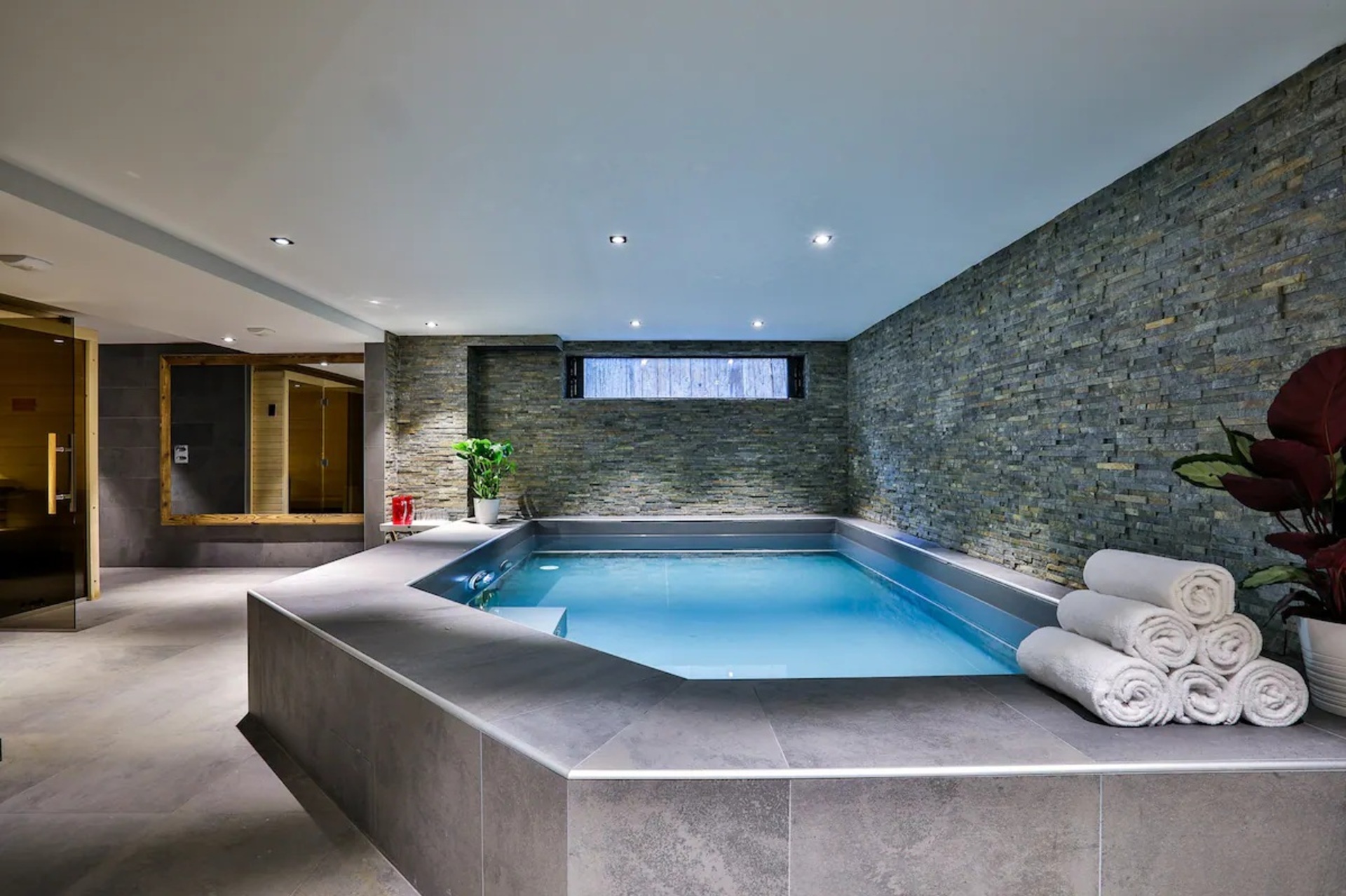 Luxury Chalet Annecy with pool features a great selection of rejuvenating wellness facilities to ensure you fully unwind on your luxury holiday. Refresh yourself in the indoor swimming pool with jet stream, or relax in the sauna after a long day. Alternatively, guests can take part in a spot of yoga or a spin class by streaming their preferred class on the in-mirror TV.