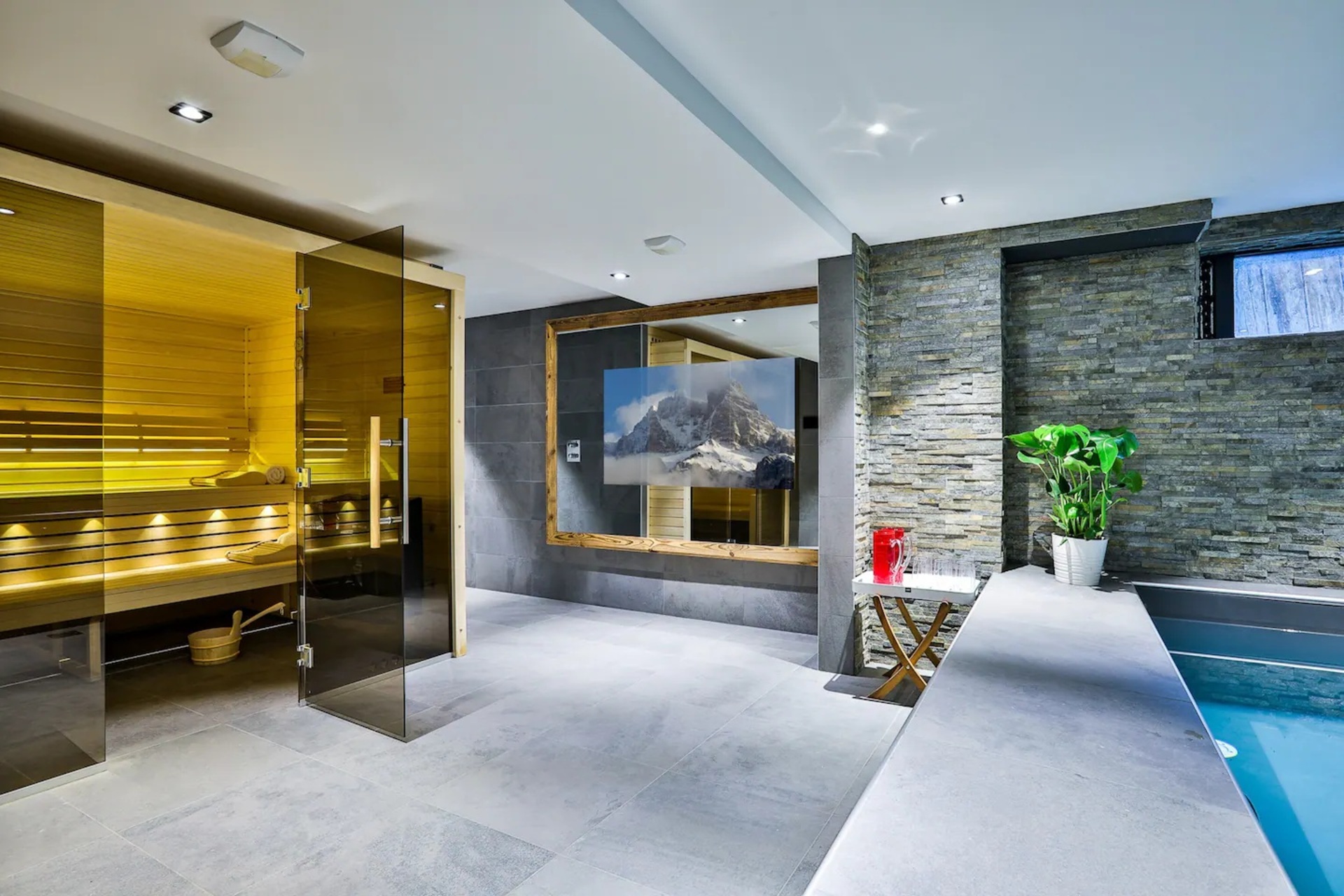 - Amenities: Bathroom essentials, BBQ, Bedroom comforts, Cinema Room, Coffee machine, Dishwasher, DVD Player, Fireplace, Free parking, Hair dryer, Heating, Kitchen, Pool, Sauna, Ski room, Soundproof, Terrace, TV, Wi-Fi