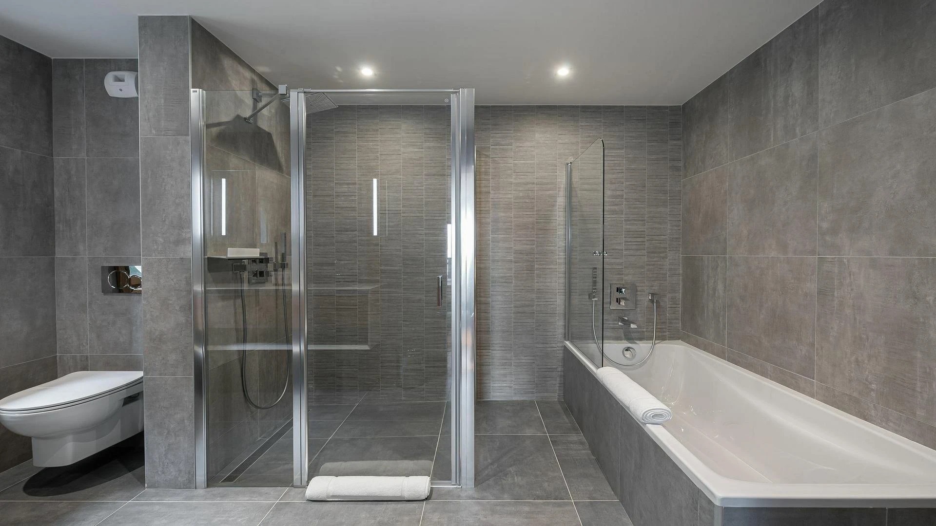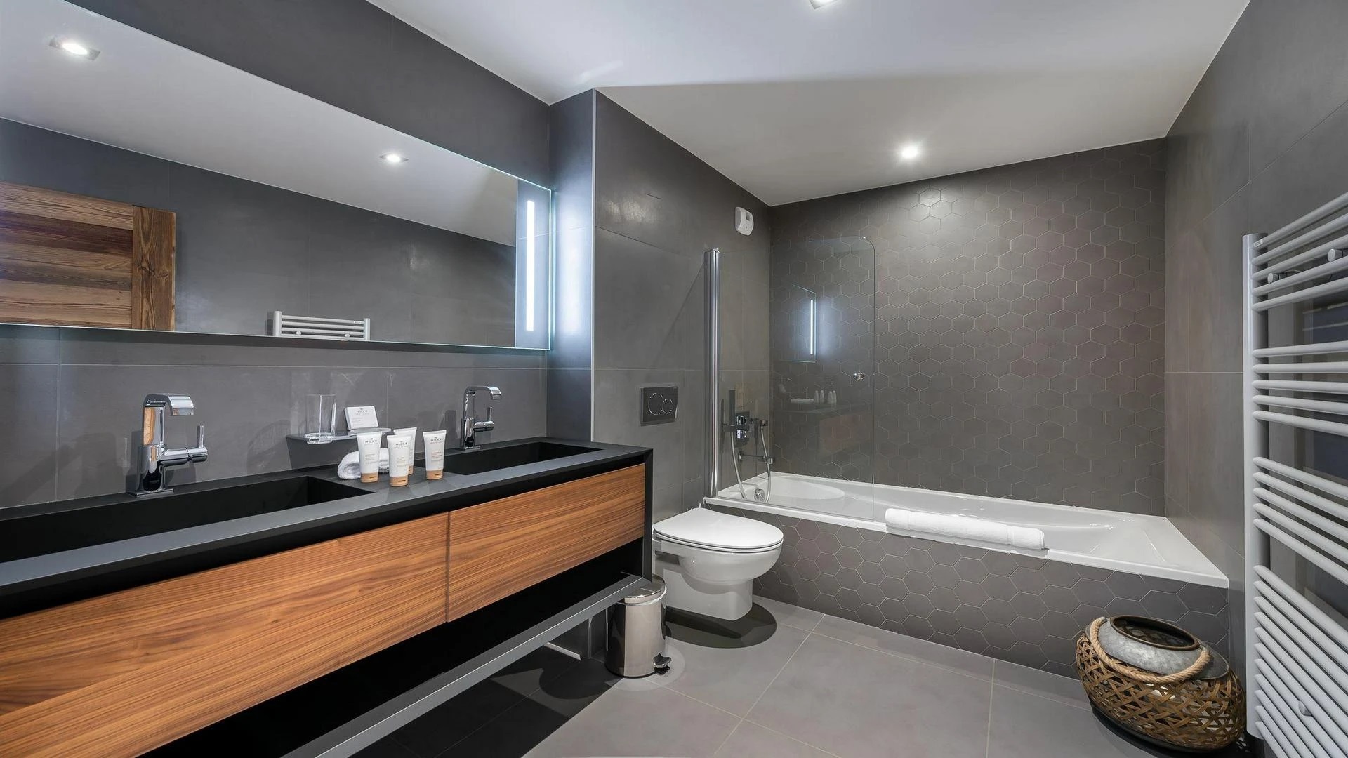 The chalet offers six beautifully appointed double bedrooms, accommodating up to 12 guests in supreme comfort. Each bedroom is adorned with sleek wooden interiors, exuding a sophisticated alpine charm, and features plush bedding, en-suite bathrooms with bathtubs and luxurious walk-in showers. Several rooms also benefit from private balcony or terrace access, allowing you to wake up to spectacular views.