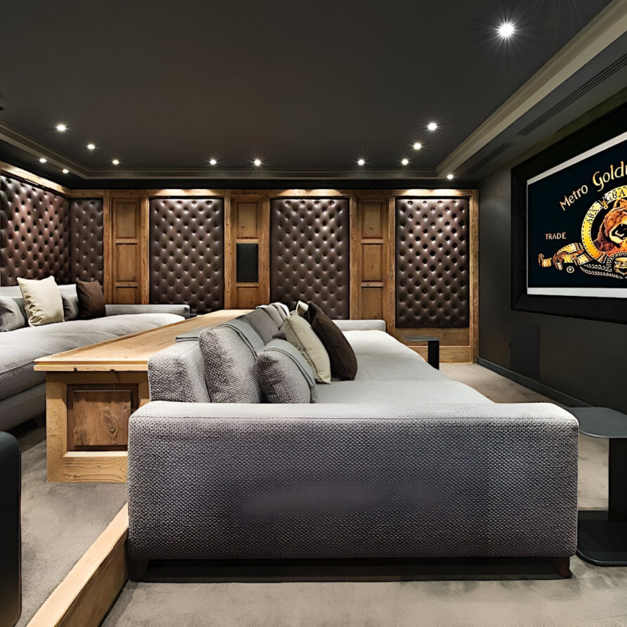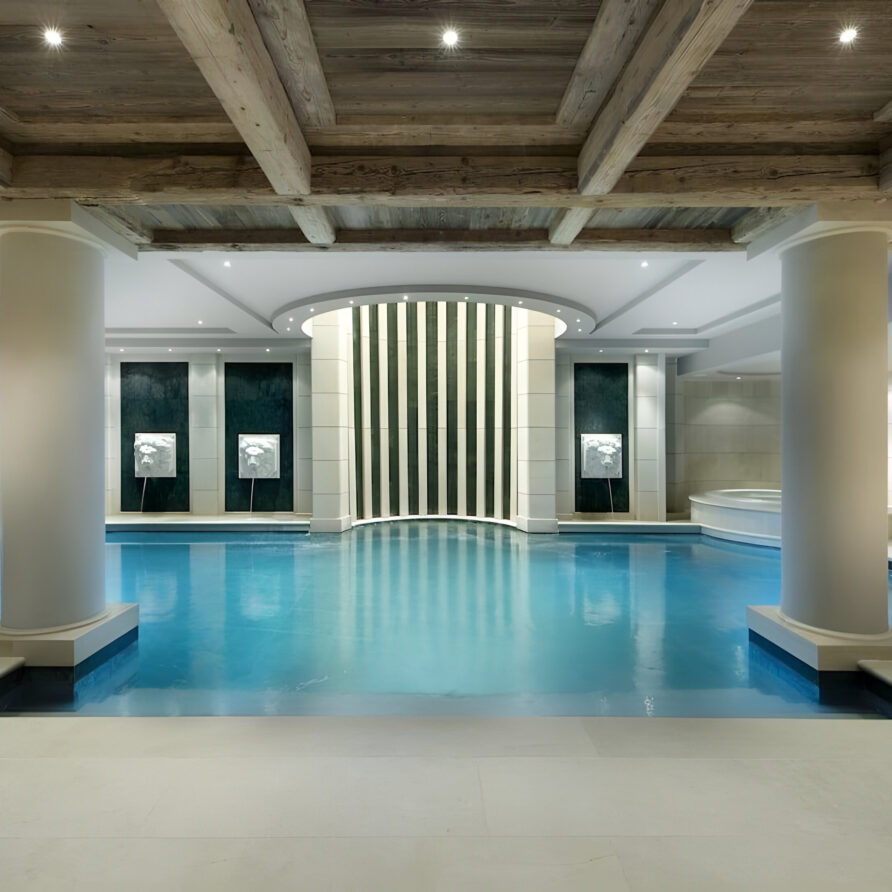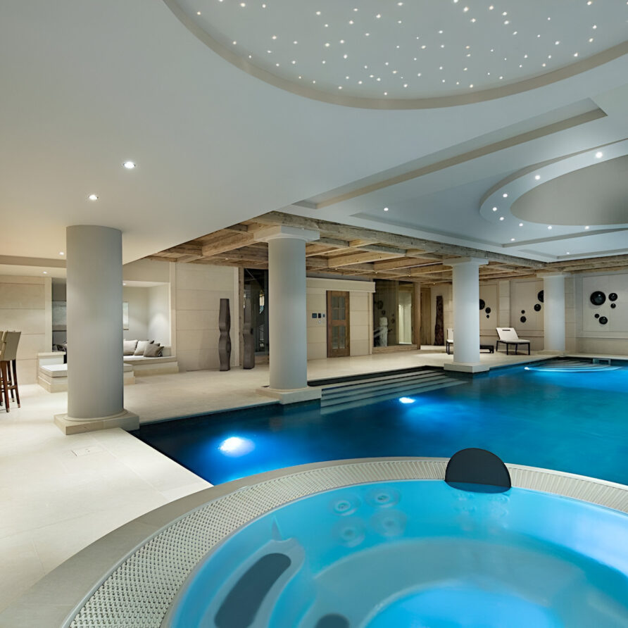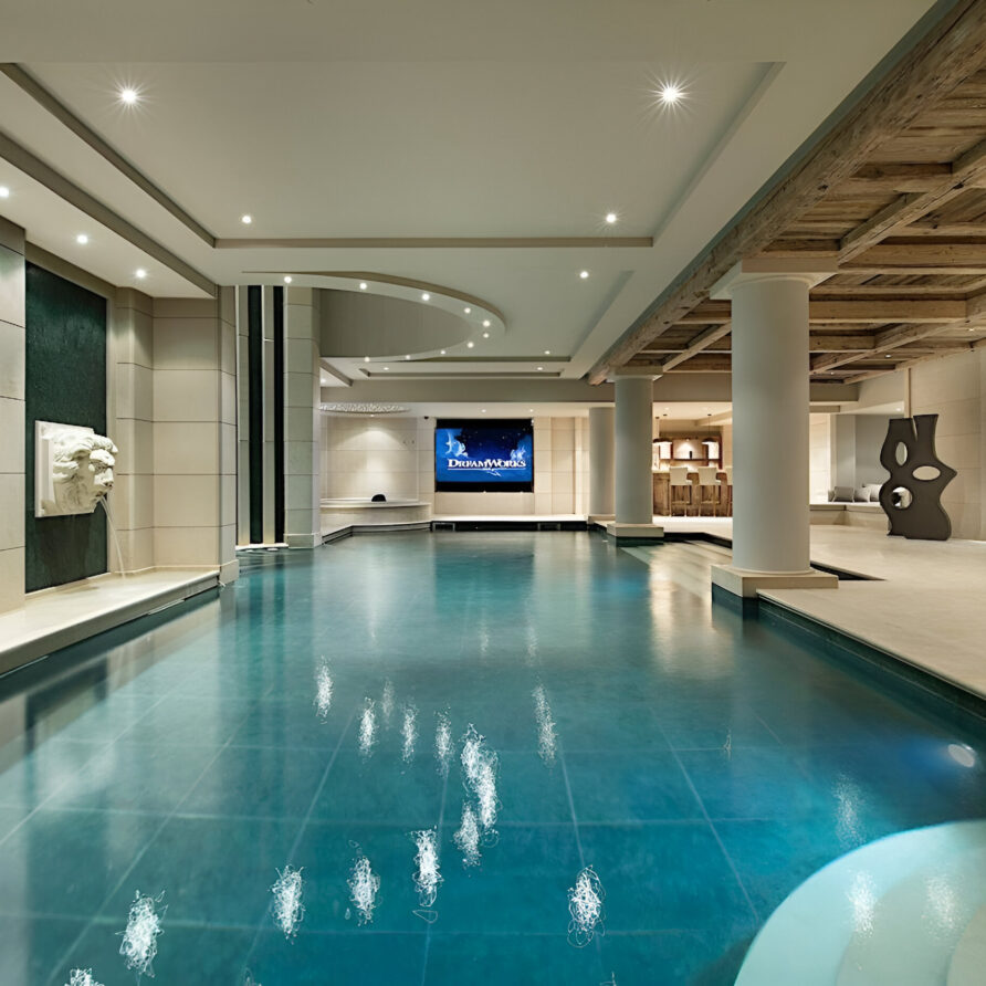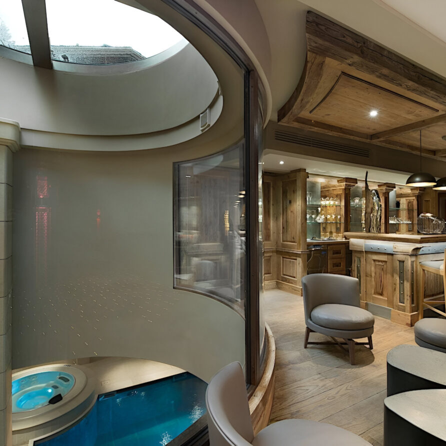 The wellness suite of the chalet is second to none, and boasts a 13m swimming pool, Jacuzzi, massage rooms, sauna, Hammam, private gym, and a spacious relaxation area with a bar. The facilities on offer will tempt you into ignoring skiing altogether in favor of a day luxuriating in your private spa. For a quieter evening, the cinema room awaits, ready to settle down in front of your favorite film or sporting event.