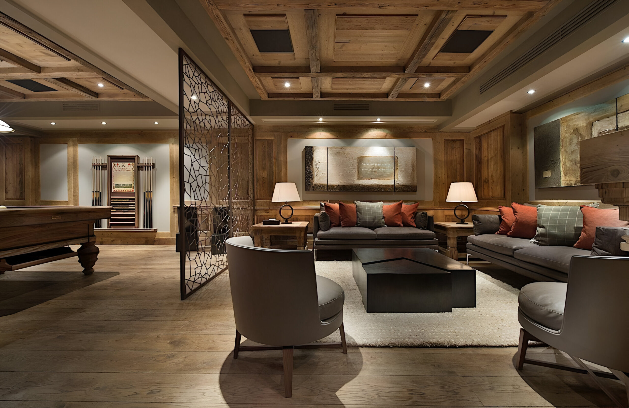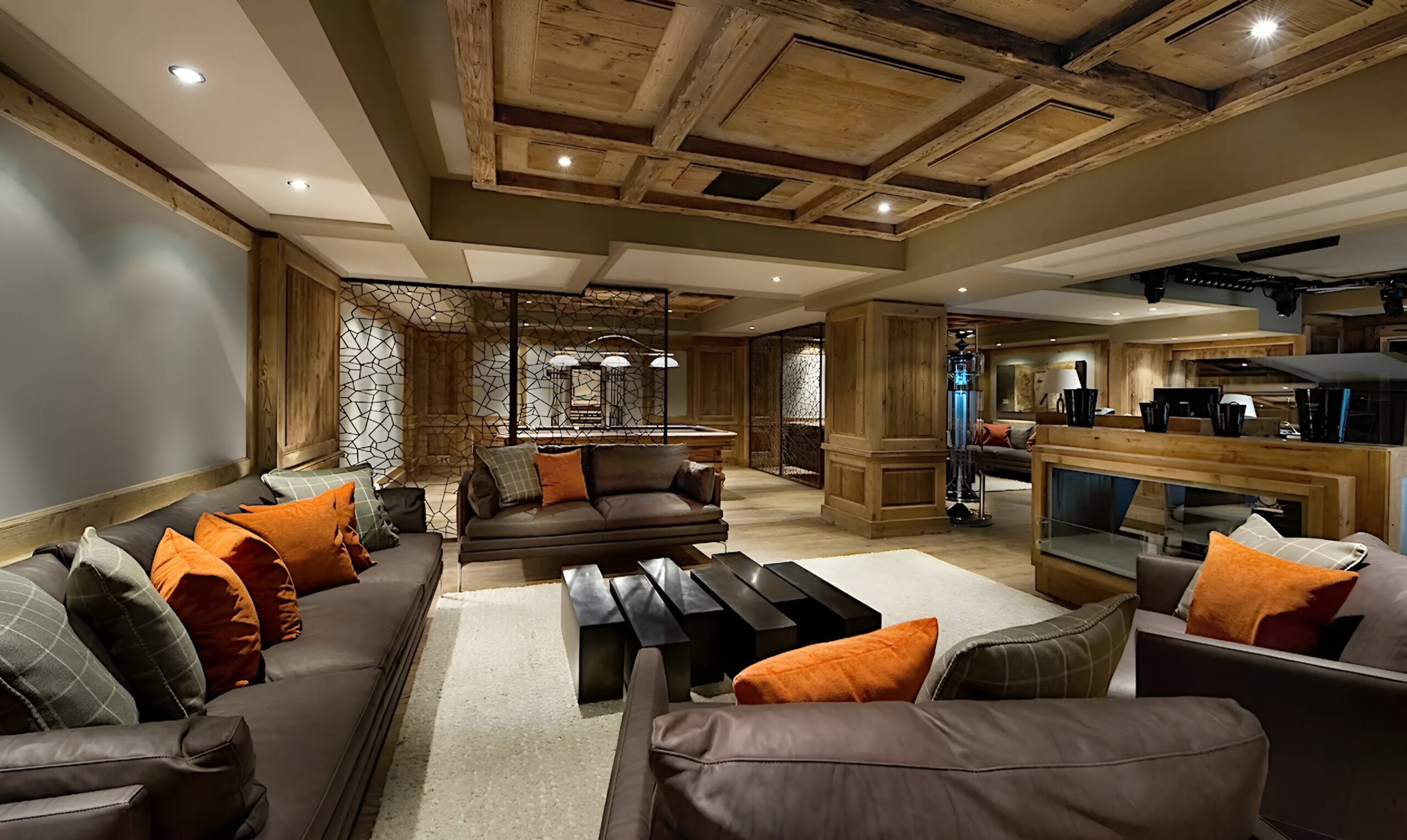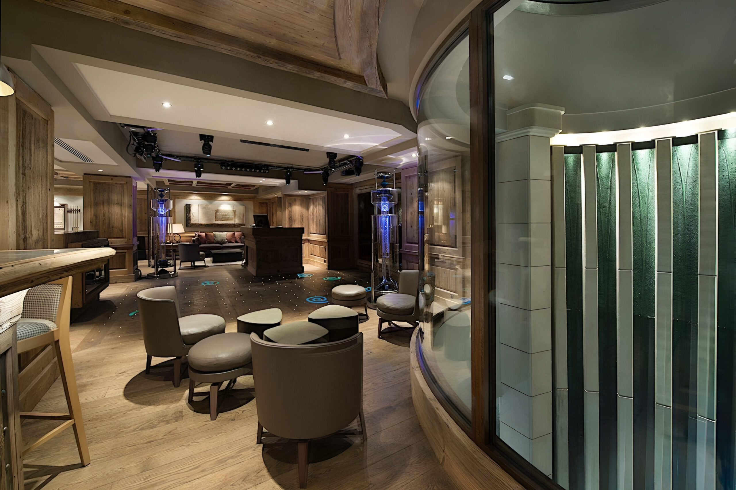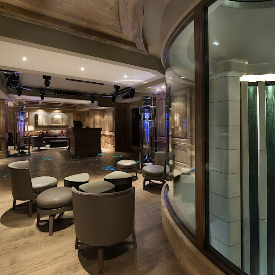 The wellness suite of the chalet is second to none, and boasts a 13m swimming pool, Jacuzzi, massage rooms, sauna, Hammam, private gym, and a spacious relaxation area with a bar. The facilities on offer will tempt you into ignoring skiing altogether in favor of a day luxuriating in your private spa. For a quieter evening, the cinema room awaits, ready to settle down in front of your favorite film or sporting event.