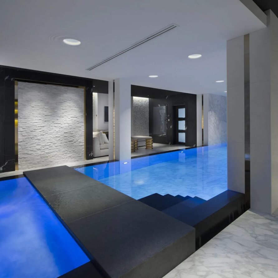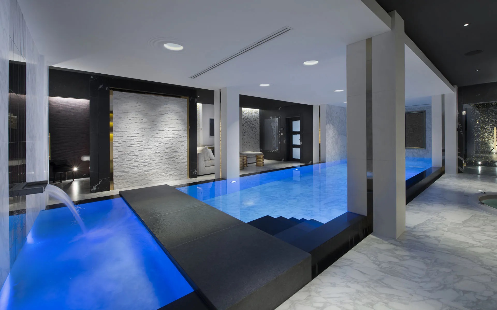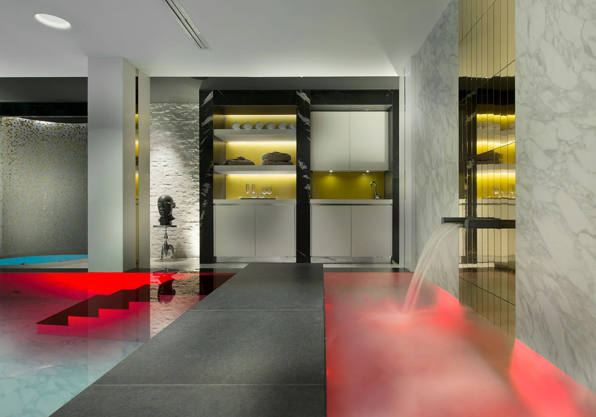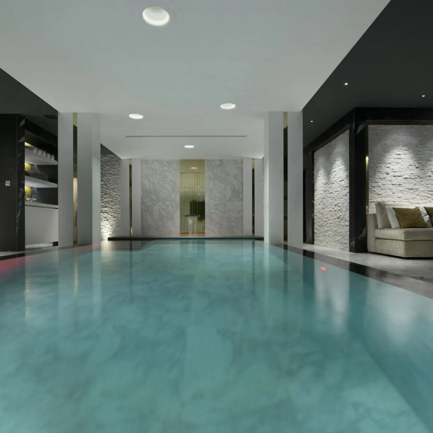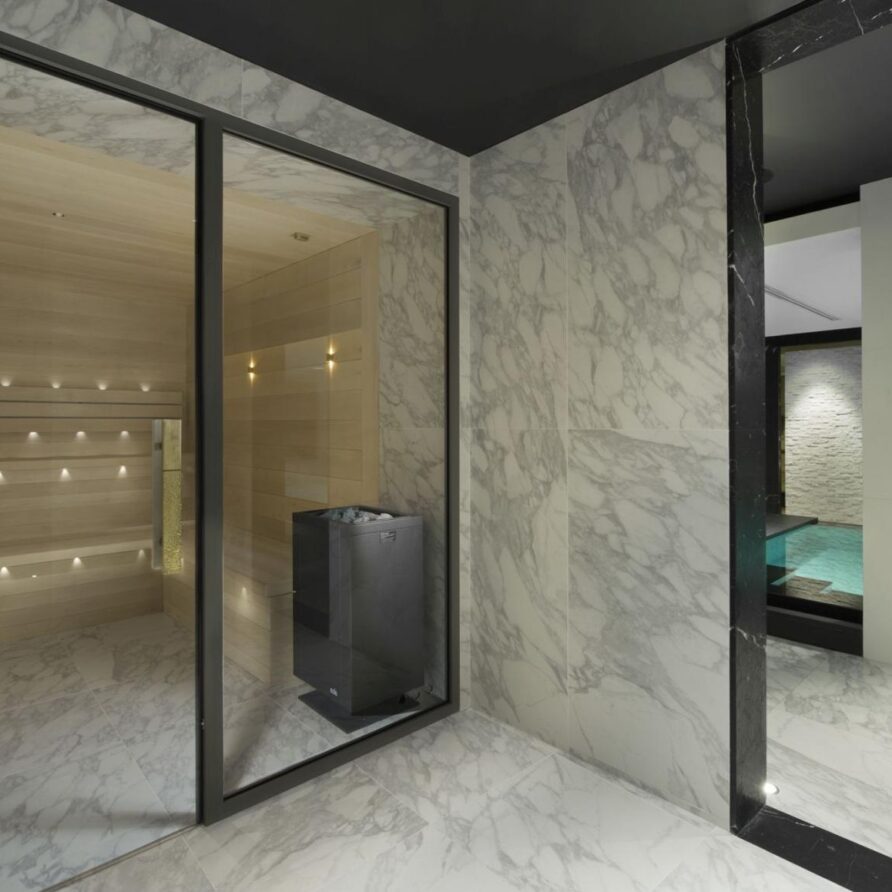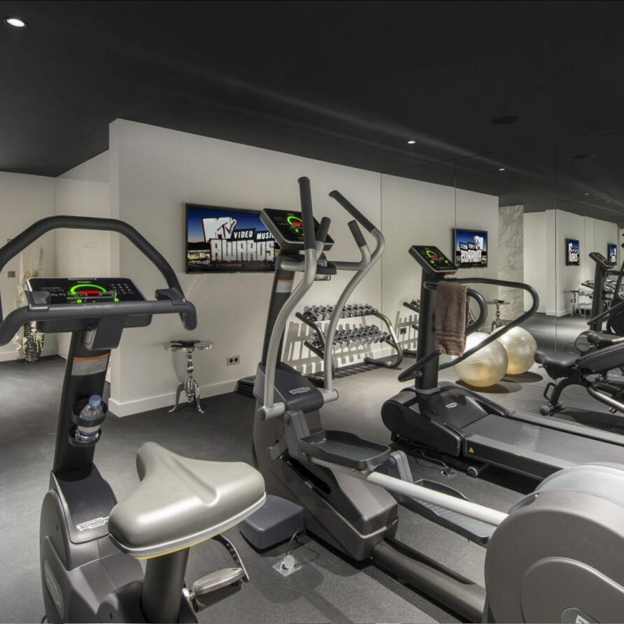 While the living area is a relaxing space, the chalet benefits from a showstopping private spa and wellness area. There’s a large 10m chalet swimming pool, an indoor hot tub, sauna, hammam, and treatment room for post-ski massages. For working out the chalet benefits from a well-appointed fitness suite with a variety of free-weights and cardio options.