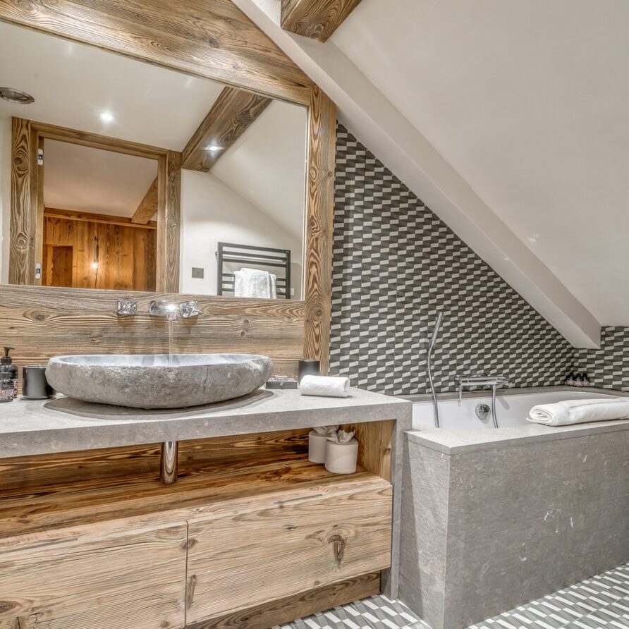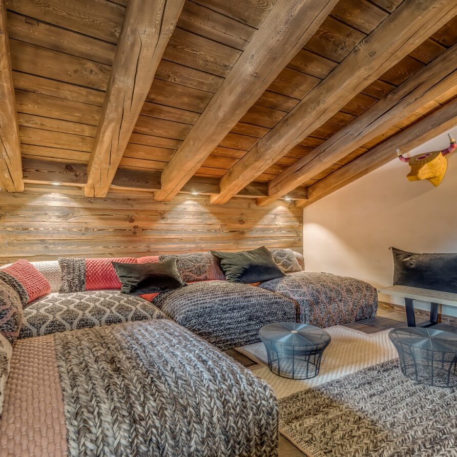The holiday chalet is spread over four levels and an expansive 350sqm. The interiors are harmonious and modern and the four en-suite bedrooms are complemented by a sauna, a massage room and a beautiful indoor pool. If you are looking for contemporary living space that is beautifully finished this chalet would be an ideal choice.