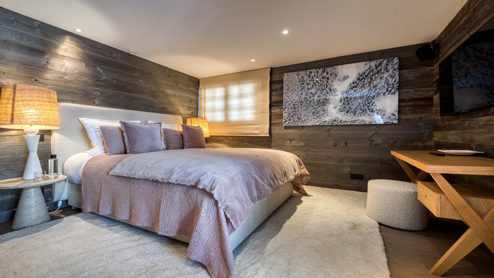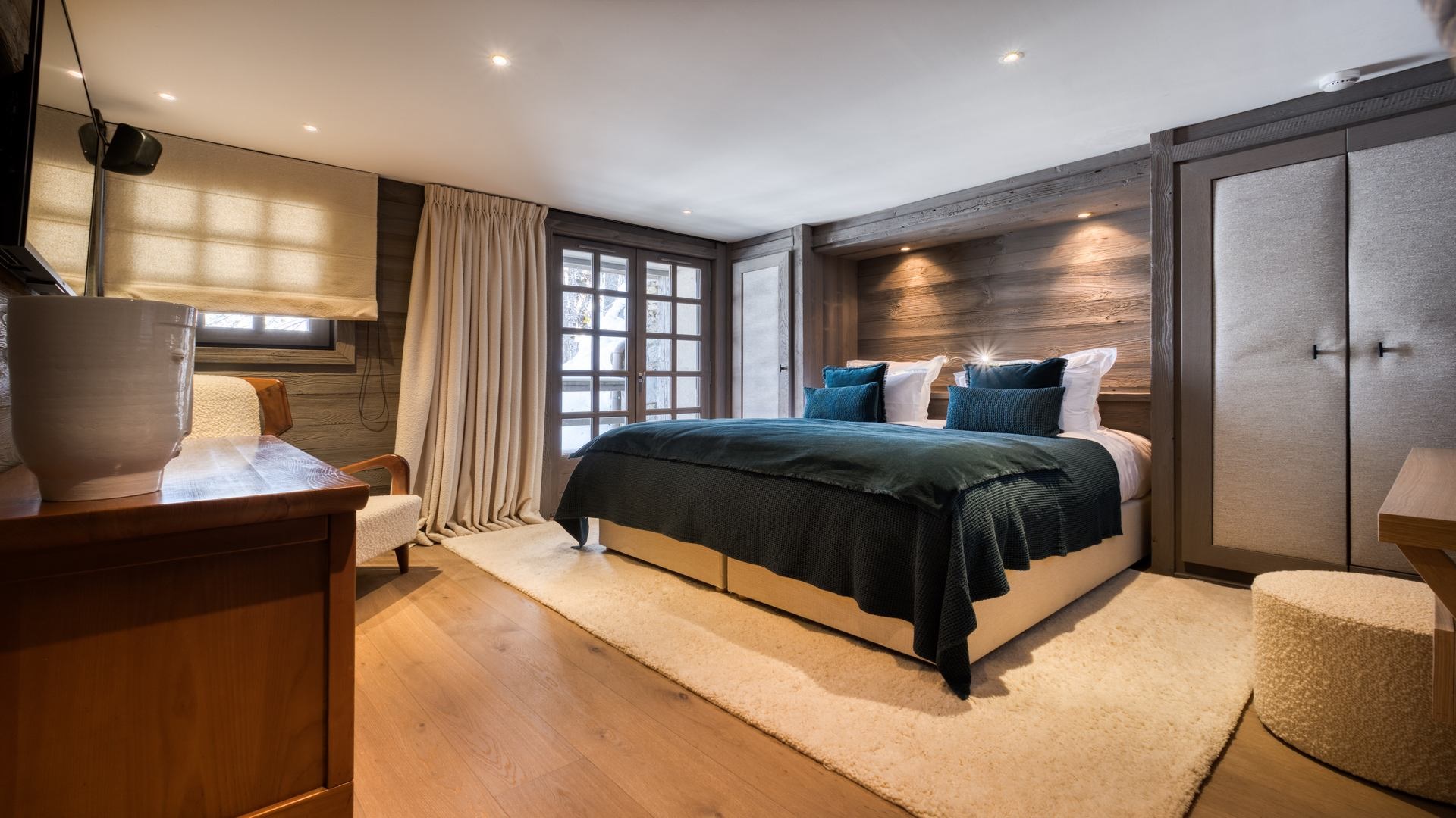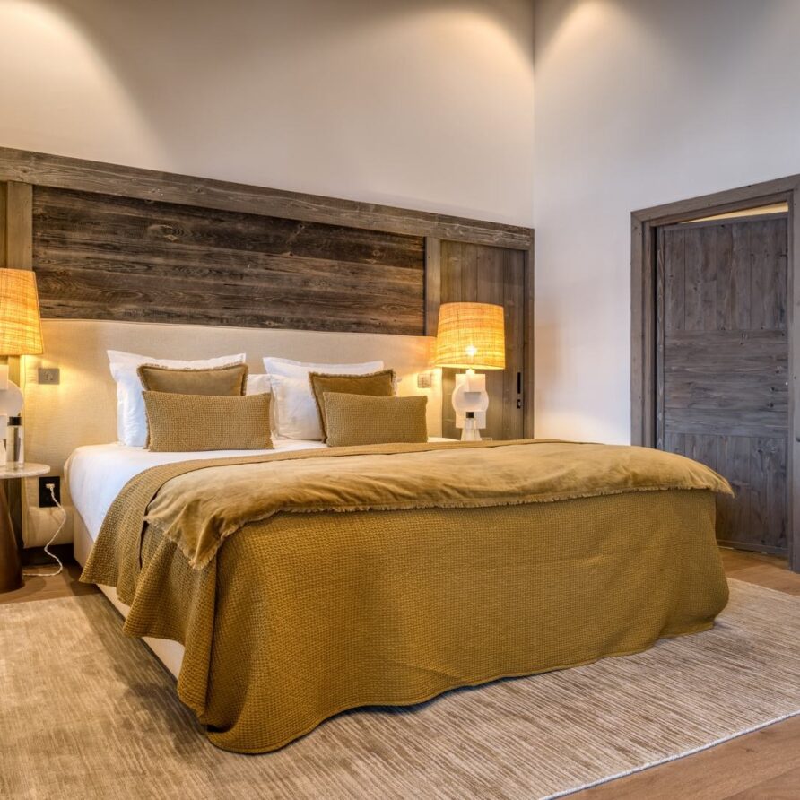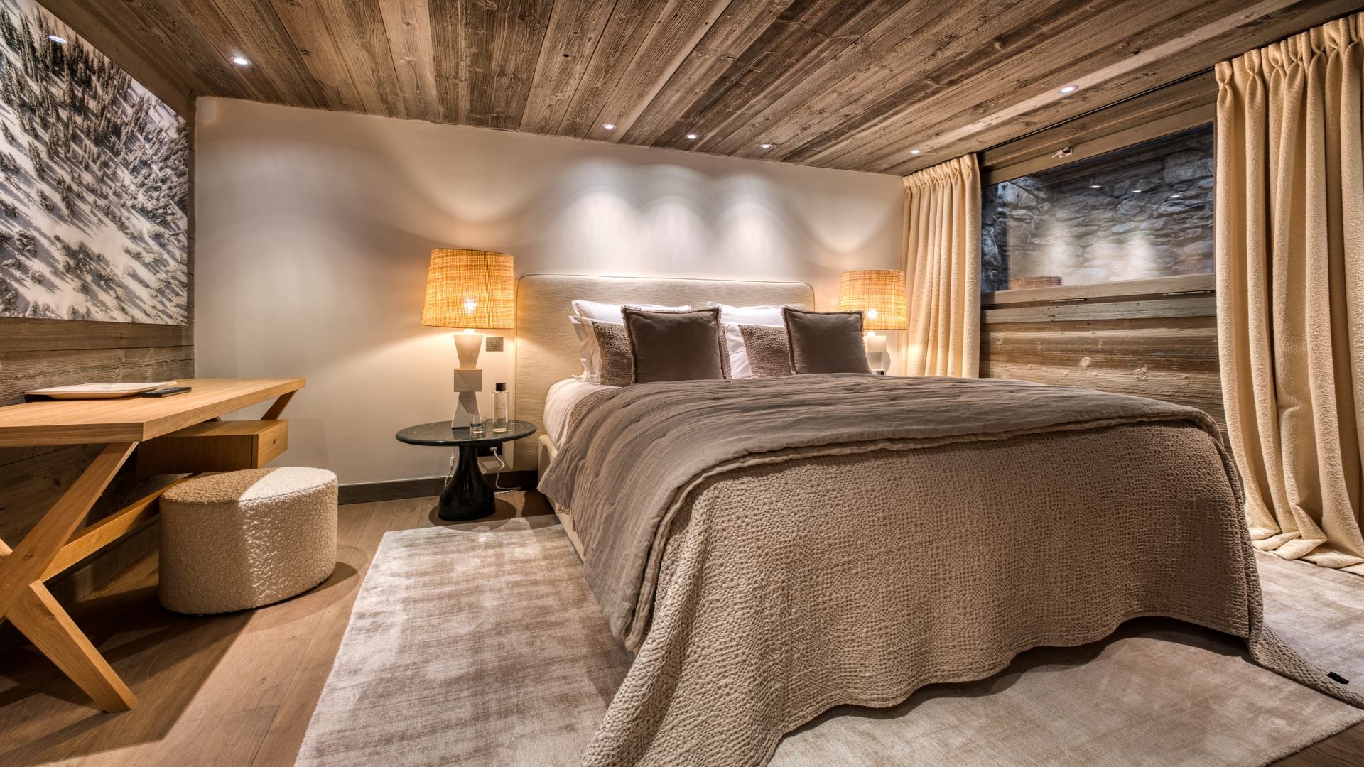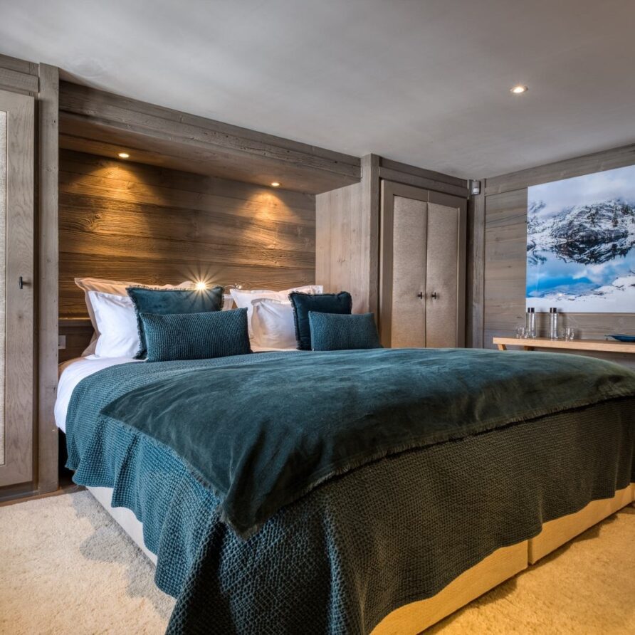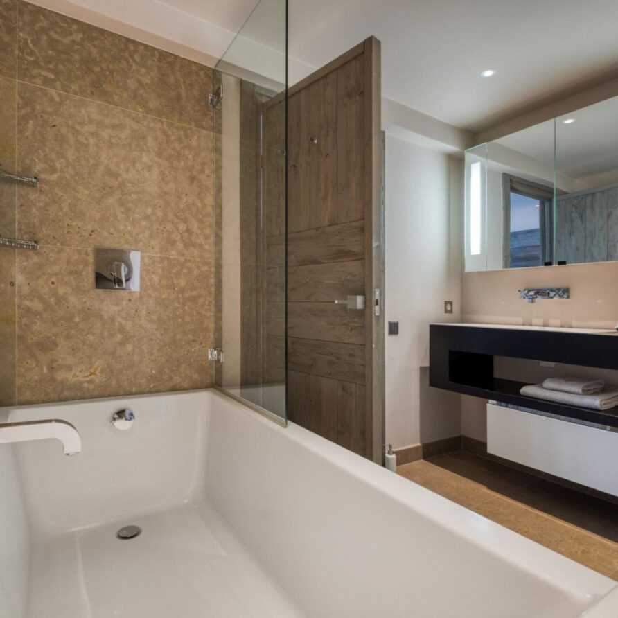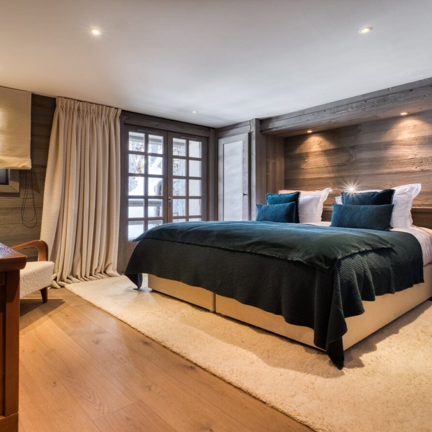 The chalet accommodates groups of 12 guests amongst its 6 delightful bedrooms. The main bedroom floor is the chalet’s garden level, where all except the master bedroom are found. Lovingly finished with natural materials, such as wood, leather and sheepskins, these private settings present a real luxury cocoon to unwind in at the end of the day, with beautifully complemented en-suite bathrooms, rivaling those found in luxury boutique hotels. The chalet first floor is home to the master double bedroom. Featuring plenty of space, this bedroom also has the additional luxury of direct access to the wellness area, leading on through the bedroom’s en-suite facilities.