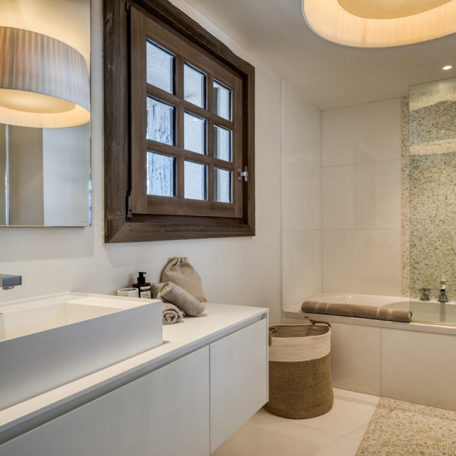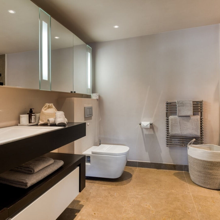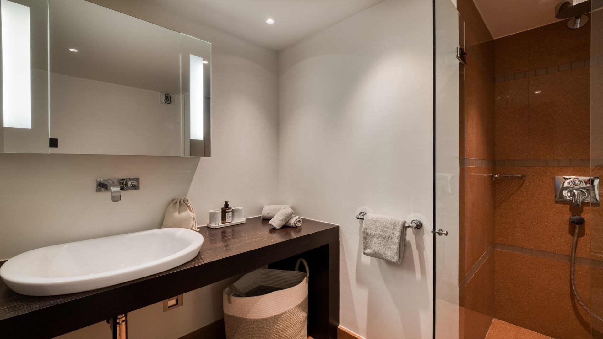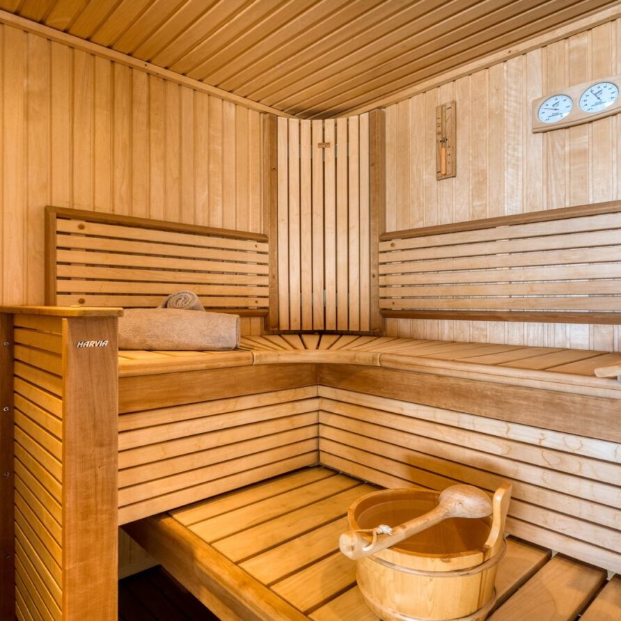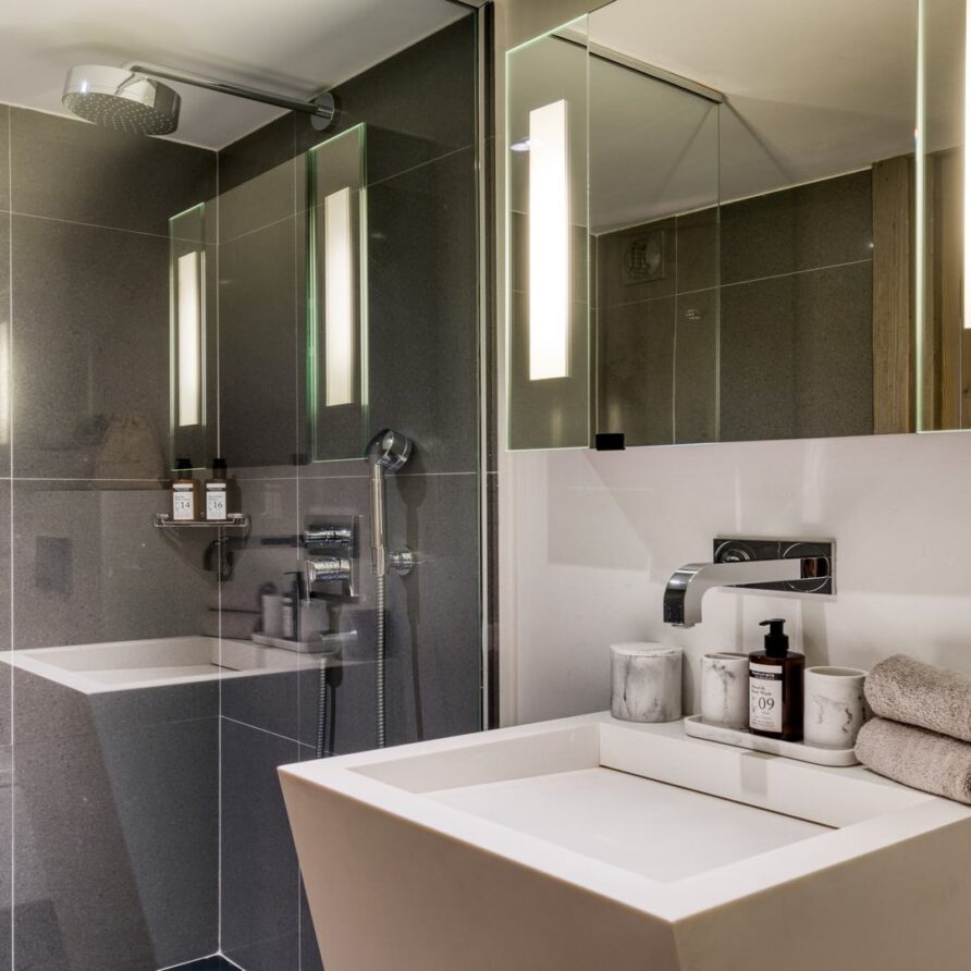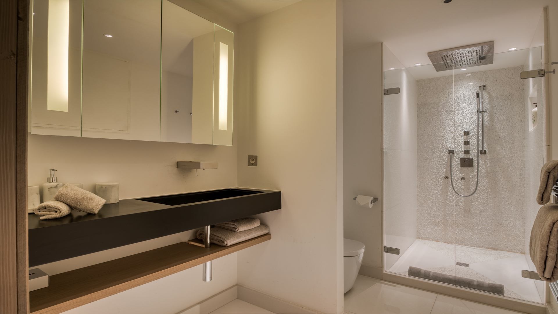 The chalet accommodates groups of 12 guests amongst its 6 delightful bedrooms. The main bedroom floor is the chalet’s garden level, where all except the master bedroom are found. Lovingly finished with natural materials, such as wood, leather and sheepskins, these private settings present a real luxury cocoon to unwind in at the end of the day, with beautifully complemented en-suite bathrooms, rivaling those found in luxury boutique hotels. The chalet first floor is home to the master double bedroom. Featuring plenty of space, this bedroom also has the additional luxury of direct access to the wellness area, leading on through the bedroom’s en-suite facilities.
