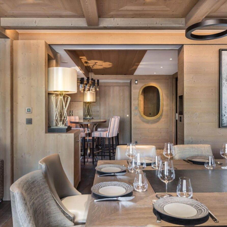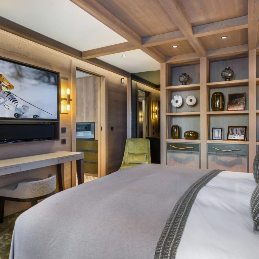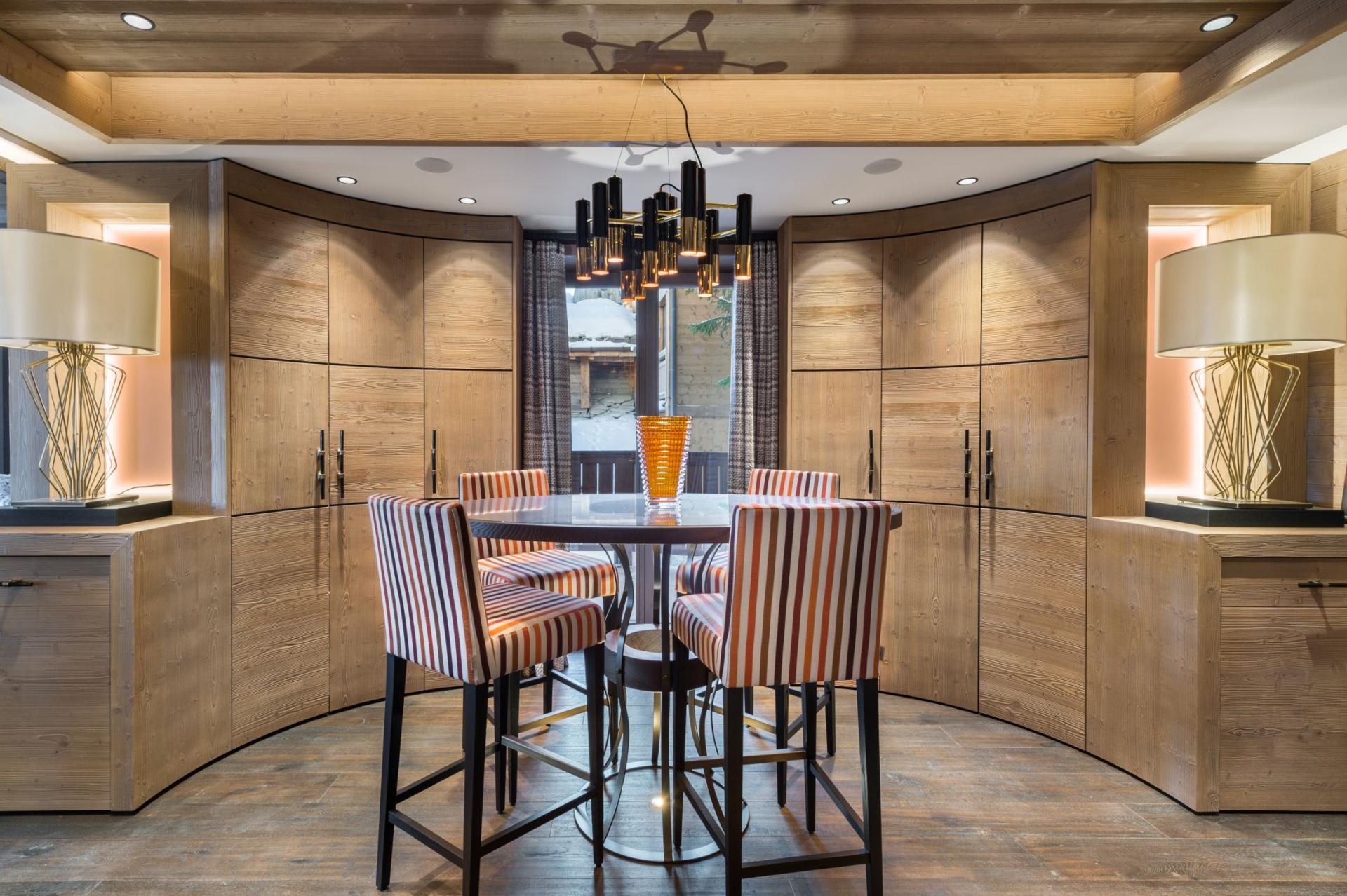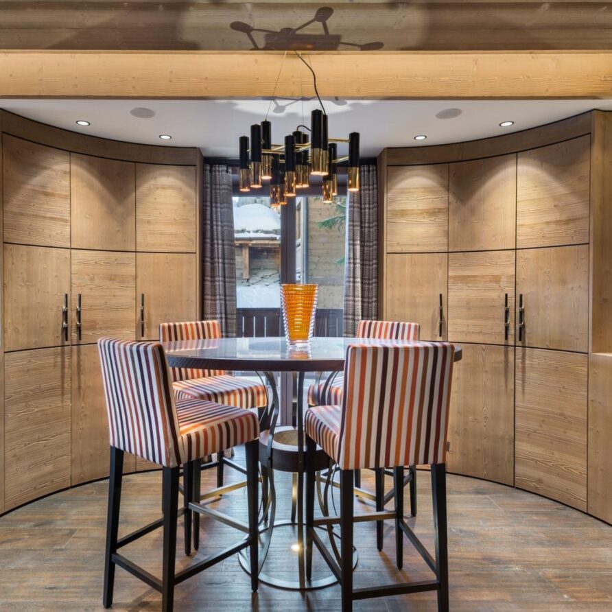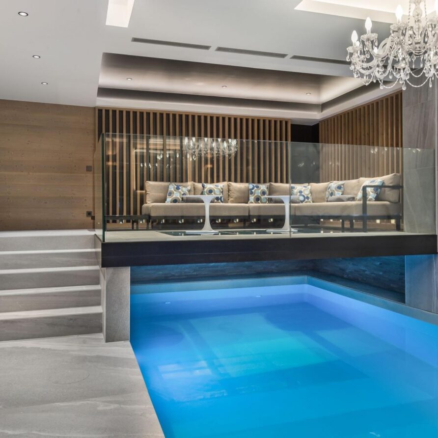 As befits any super-luxury ski chalet has designated an entire floor to wellness and entertainment. This ski chalet swimming pool is a good size and features a mezzanine chill out spot for relaxing post-swim. There’s also an indoor hot tub, treatment room, sauna and Hammam. Completing the wellness suite are a fitness room and a bar, so whether you’re a gym bunny or prefer relaxing with a glass of something sparkling, you’ll find the facility that matches your needs! Also, on this floor is the chalet’s lovely cinema room, the perfect space to enjoy big-screen blockbusters. You will also find down here the well-stocked wine cellar, should you fancy a tempting vintage while you enjoy the film.