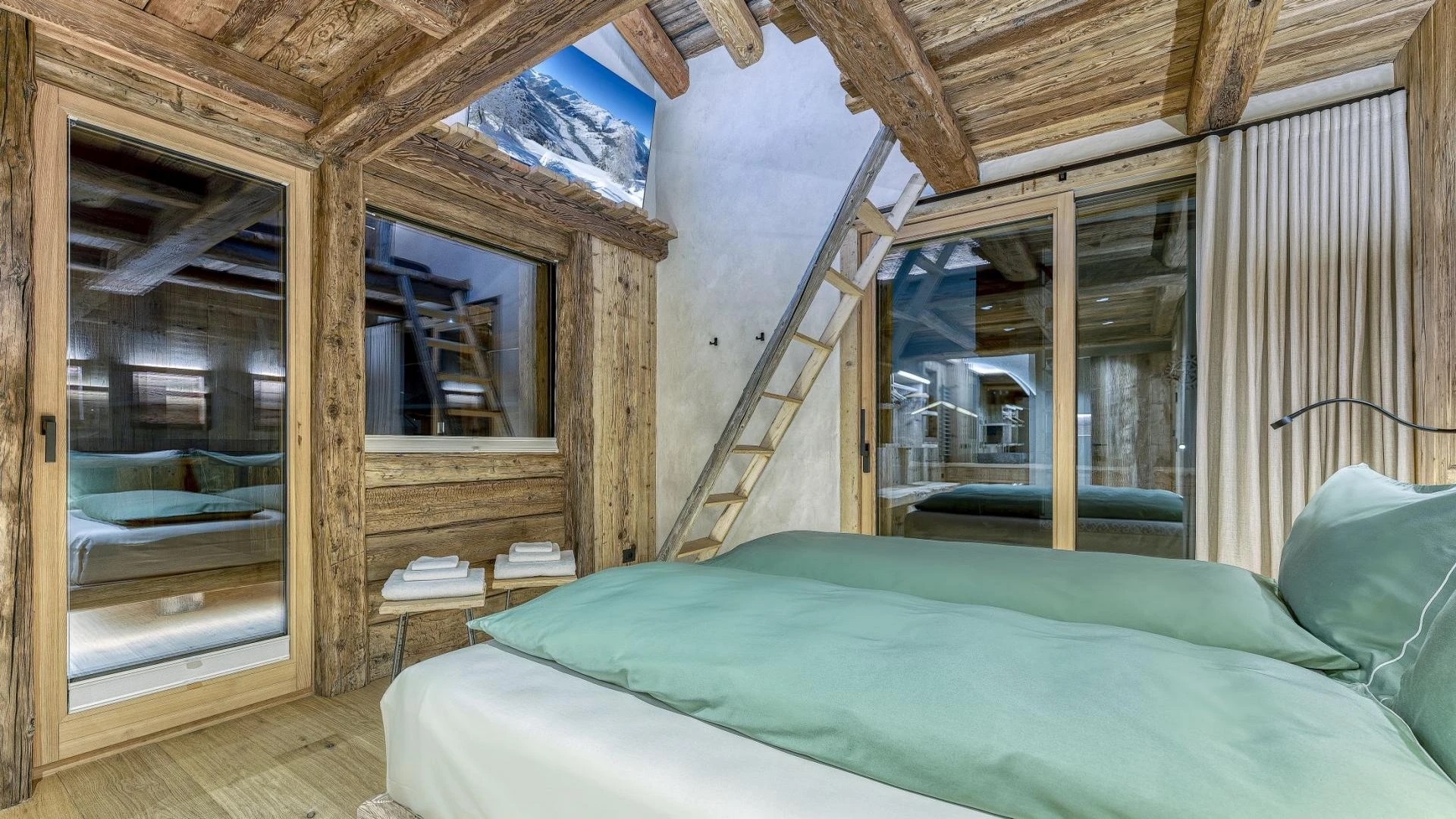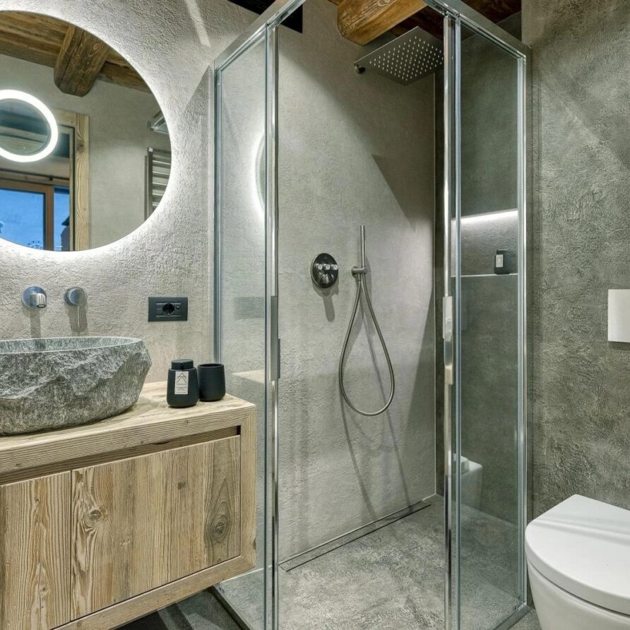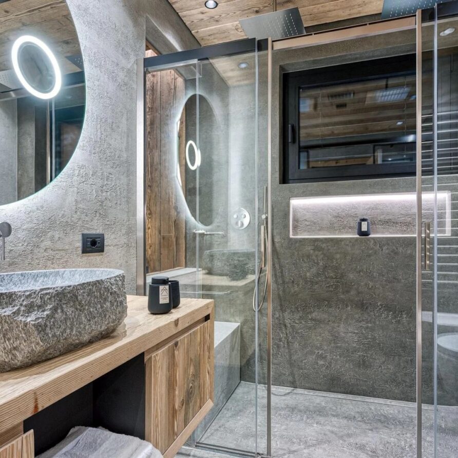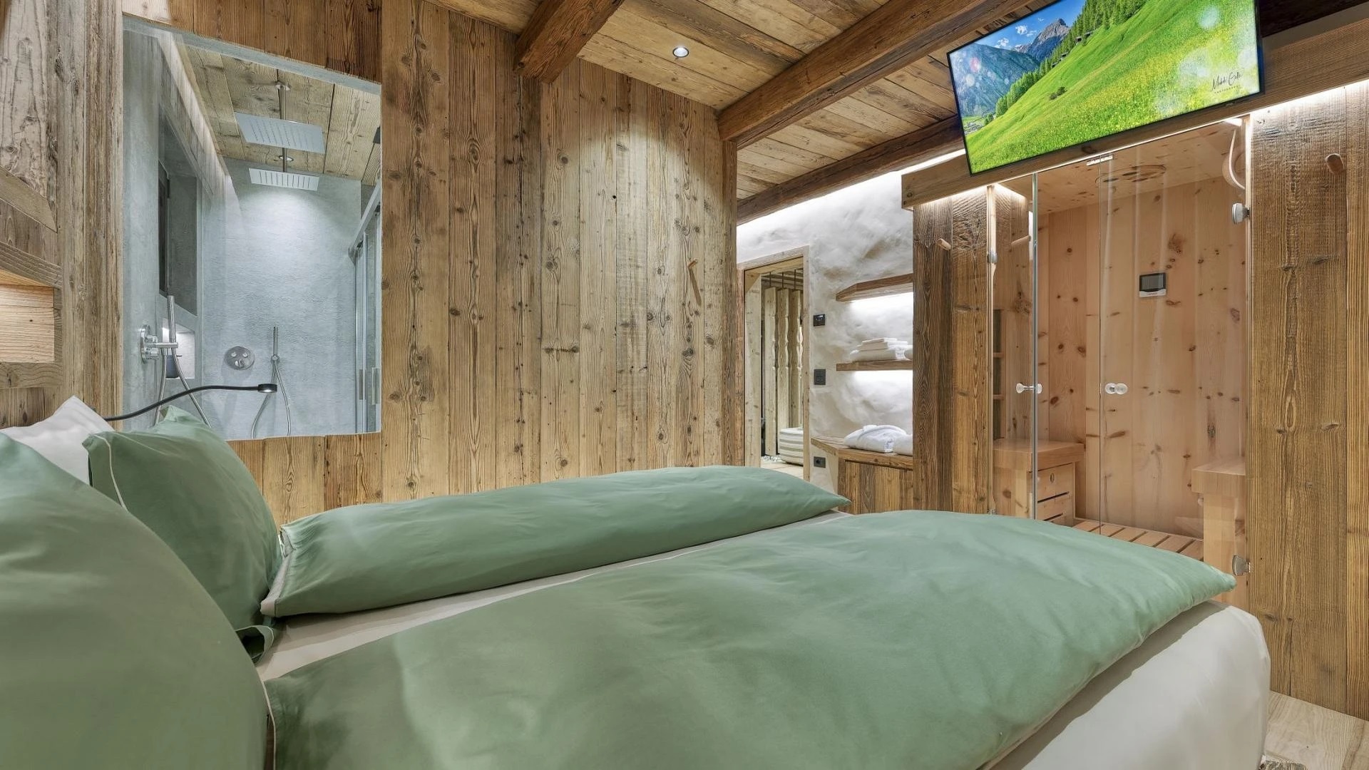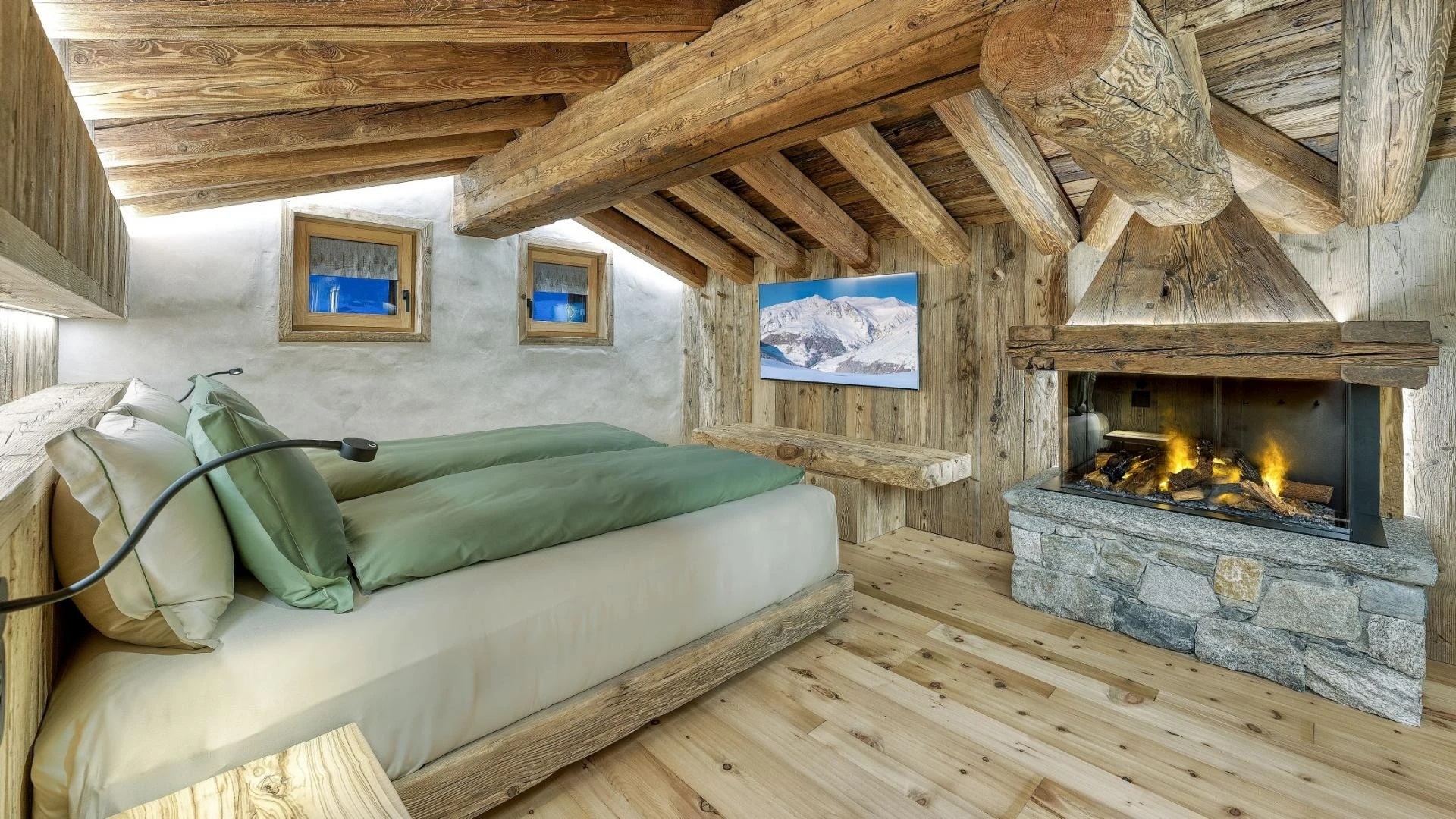 Five beautifully designed bedrooms await you, thoughtfully spread across three stunning floors, each offering unique charm and luxurious amenities. On the top floor, you’ll find a serene double bedroom featuring a cozy fireplace that adds a warm ambiance to your stay. This room is complemented by an open-plan shower room, providing an inviting retreat after a day on the slopes. The first floor boasts three additional bedrooms, perfect for accommodating families or groups. A spacious double bedroom with private balconies, where you can savor your morning coffee while enjoying breathtaking views. This room also includes a charming fireplace, and an en-suite bathroom equipped with a double shower, ensuring a comfortable and indulgent experience.