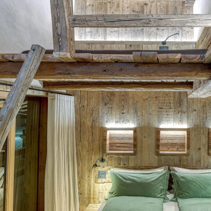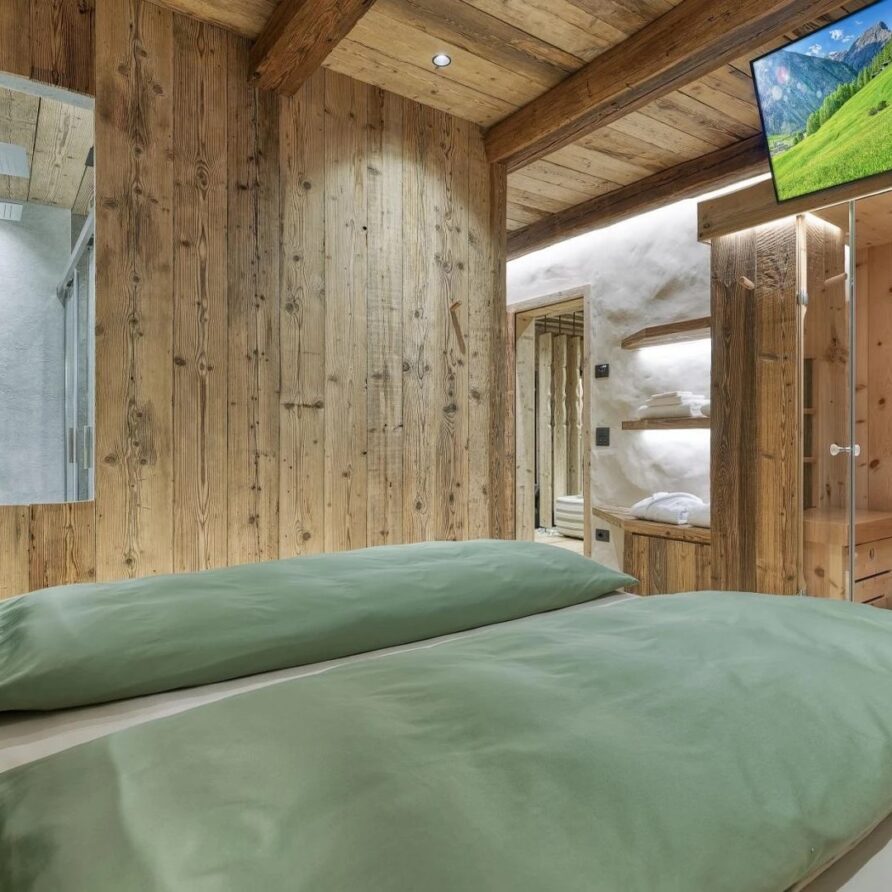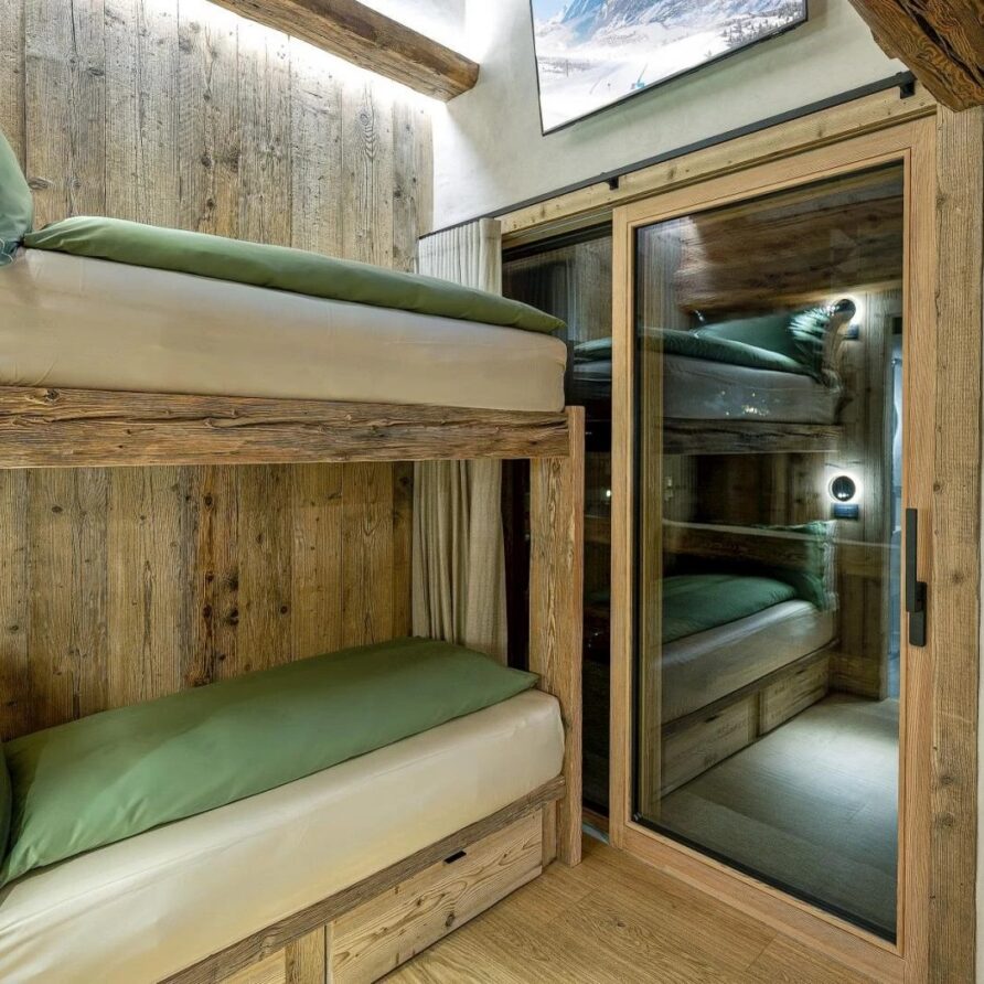 This chalet from Livigno is an eco-friendly family retreat featuring a spa that is perfect for relaxation. With five cozy yet modern bedrooms, it comfortably accommodates eight to twelve/thirteen guests, making it an excellent choice for those looking to enjoy a ski holiday in the stunning Dolomites.
