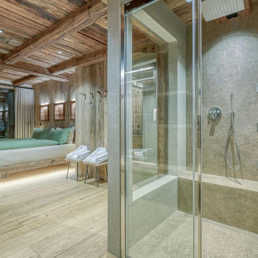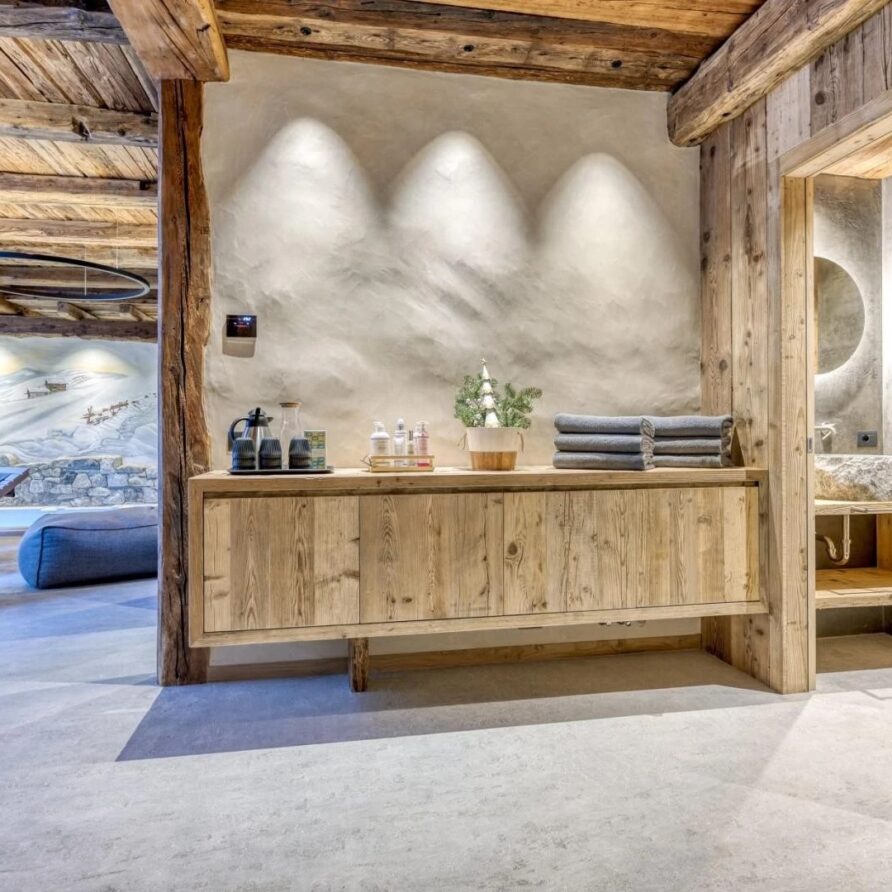 After a day on the slopes, head to the basement, where a luxurious spa awaits. The wellness area offers a superb assortment of facilities designed to rejuvenate and relax you. Dive into the swim-spa, equipped with soothing massage jets and a counter current system, allowing you to adjust the experience to your liking. Indulge in the warmth of the sauna or the steam of the Hammam, followed by a refreshing session in the emotional showers, which provide a multi-sensory experience. To complete your relaxation, a dedicated massage room is available, offering a tranquil space to unwind and soothe tired muscles after your day in the mountains.