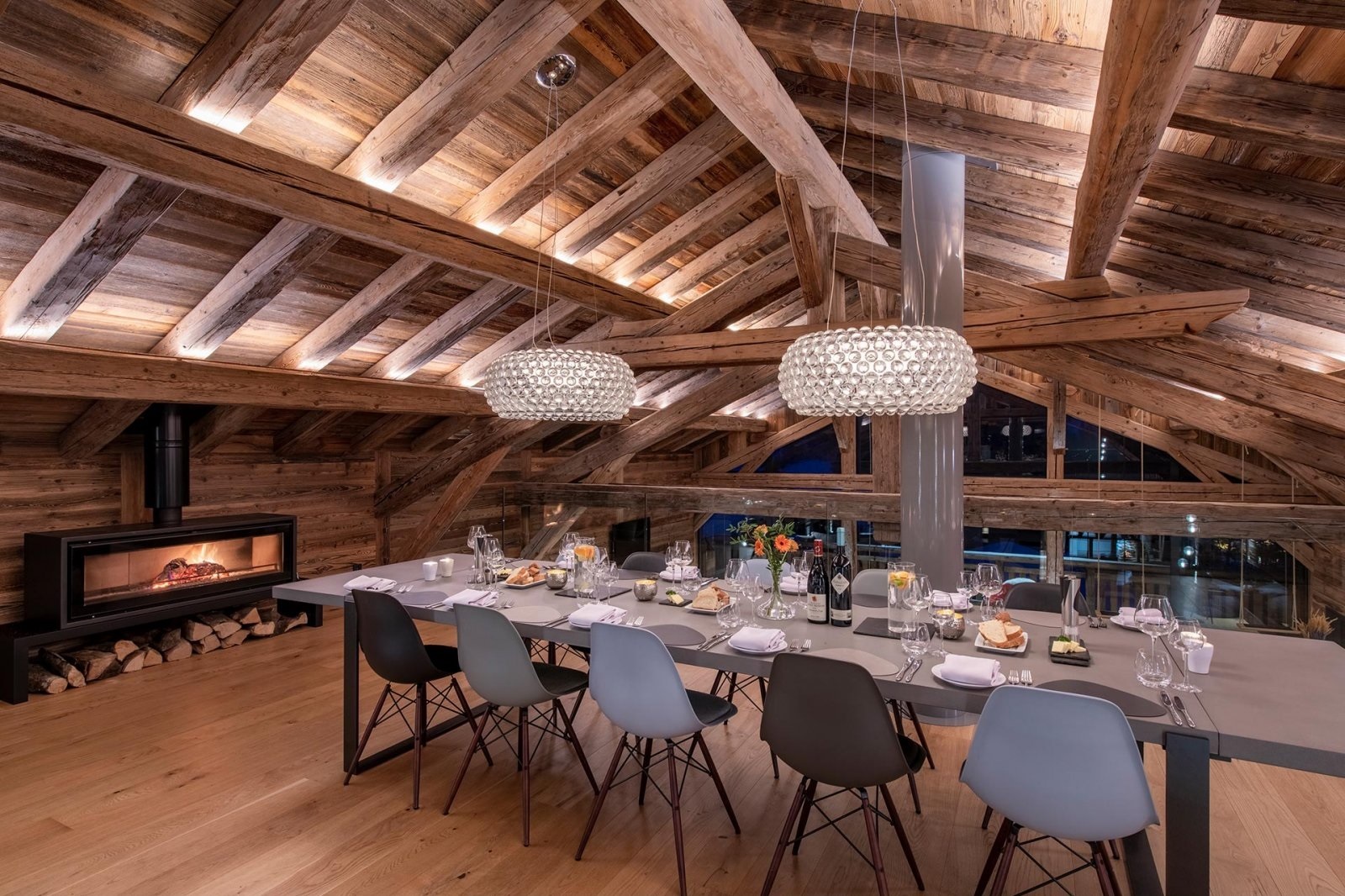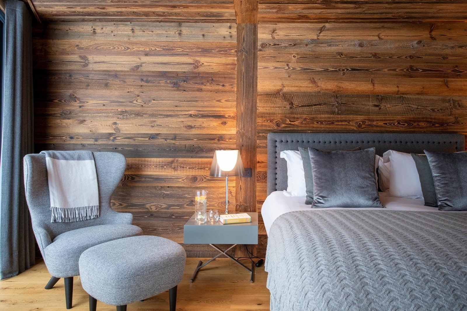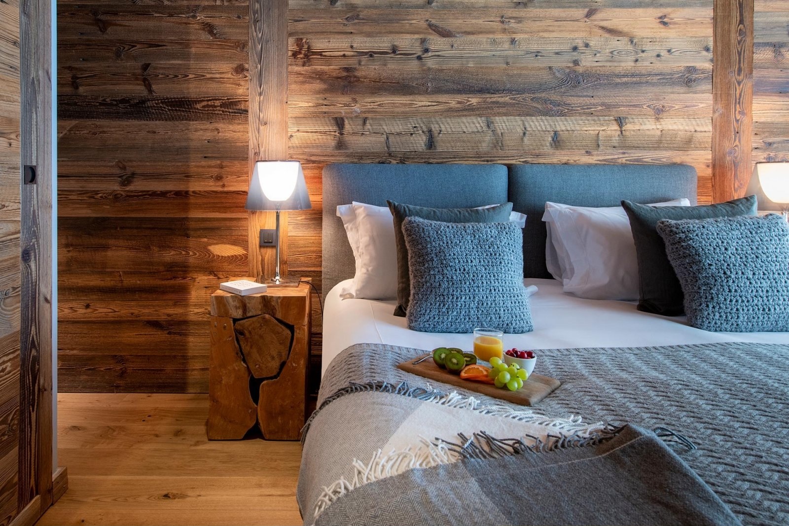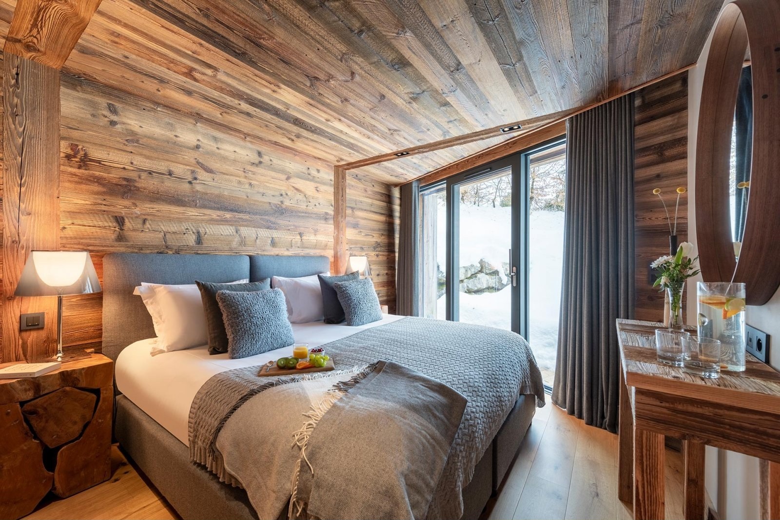 The chalet`s bedrooms were made to delight. Hanging seats and free-standing bathtubs are all carefully positioned for perfect mountain views. Every bedroom opens out onto its own terrace so you can continue to experience the mountain when luxuriating in your private suite. The bathrooms enjoy ceiling rain showers, diffused lighting, and unique features such as slatted doors to allow natural light into the space, or huge 1.5m2 black stone tiles chosen for their delicate rusty hues making the shower feel deliciously warm, intimate, almost protective in its design. The chalet also offers ample sleep options, whatever the makeup of your group. Choose between the master suite, a family suite (which includes a separate 4-bed bunk room) and three further double bedrooms all with super-king size beds and some with the option to set up the rooms as twins.