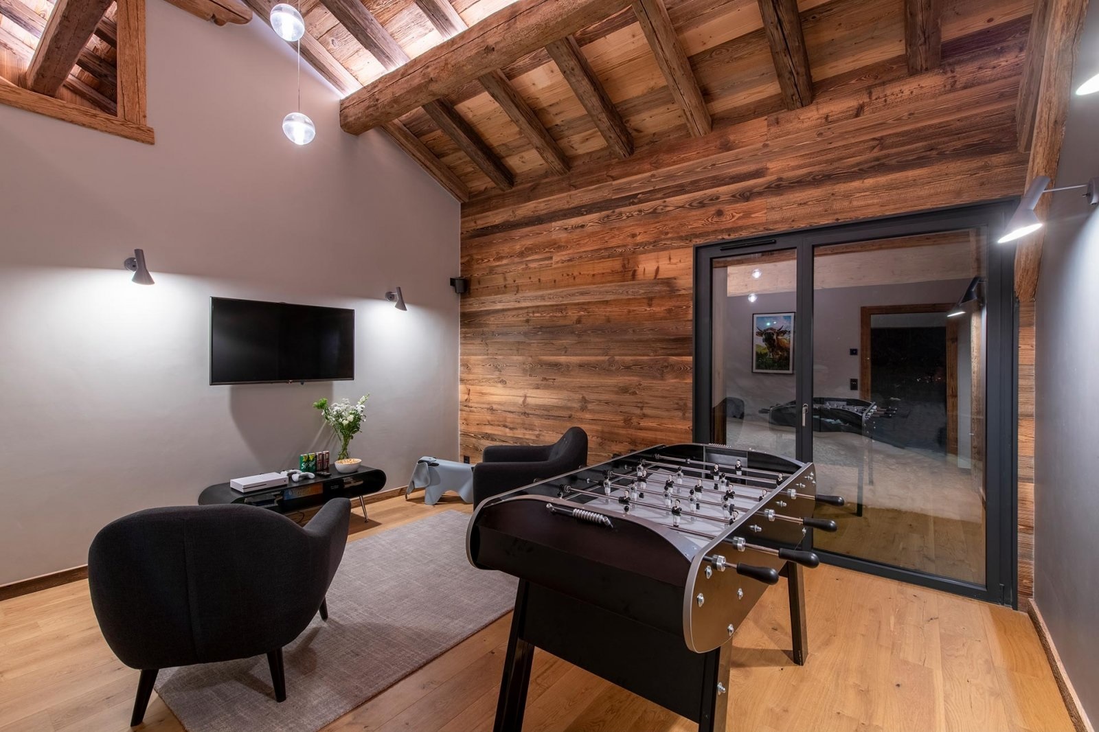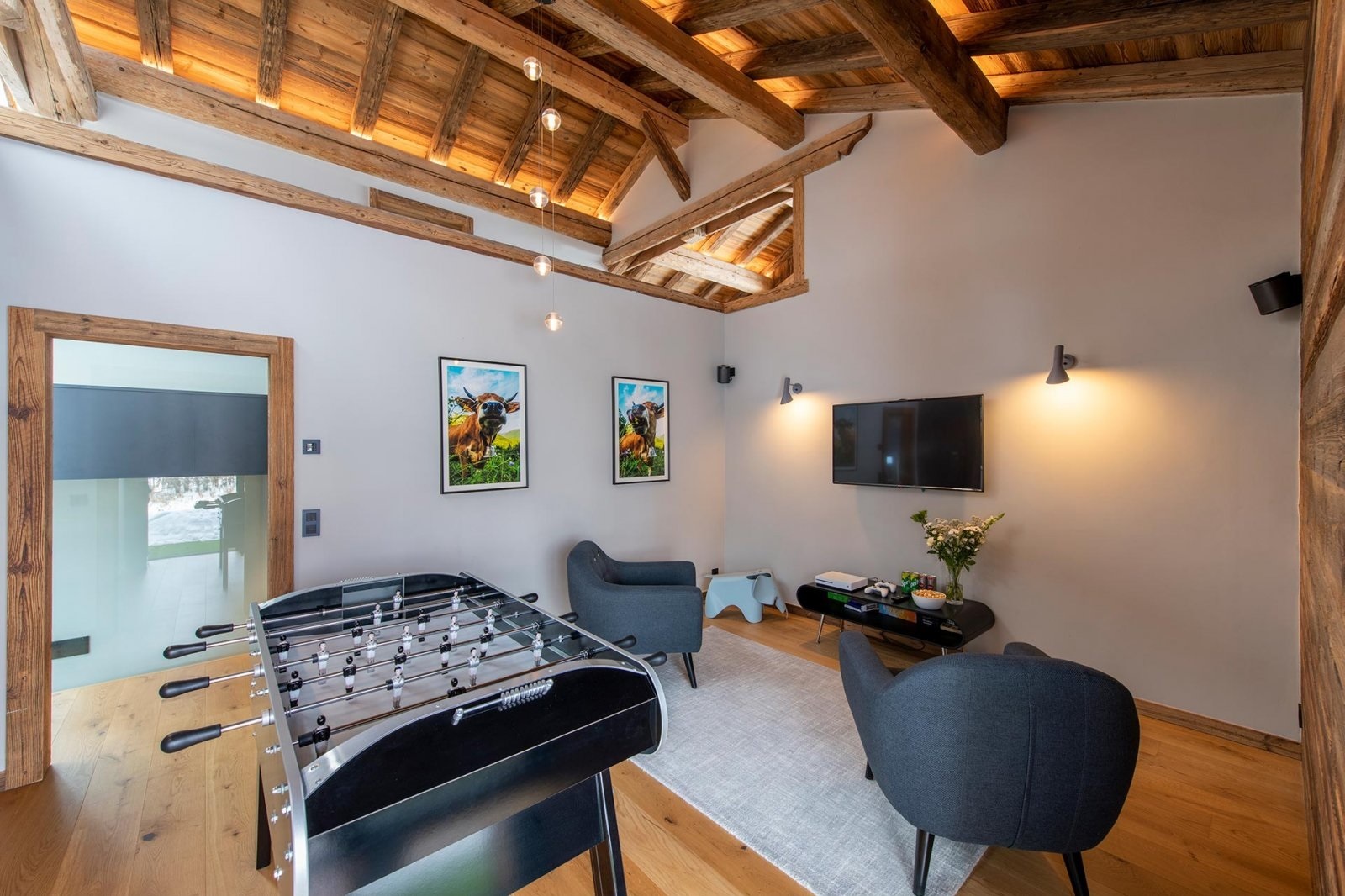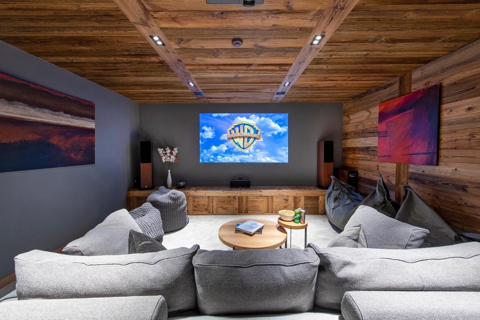The specification list is, of course, almost endless, but it is what’s not said that speaks volumes. Like that feeling when you walk down the 15m tunnel that runs directly from the private double garage into the heart of the chalet; or the carefully designed boot room with pillar-box windows allowing you a glimpse of the mountains at all times. Then there’s the thoughtfully curated collection of art that you pass as you wander into the games room where you can play bar billiards or enjoy a quick game of pool; a cinema awaits for post-piste film nights or that mid-week afternoon off the slopes.