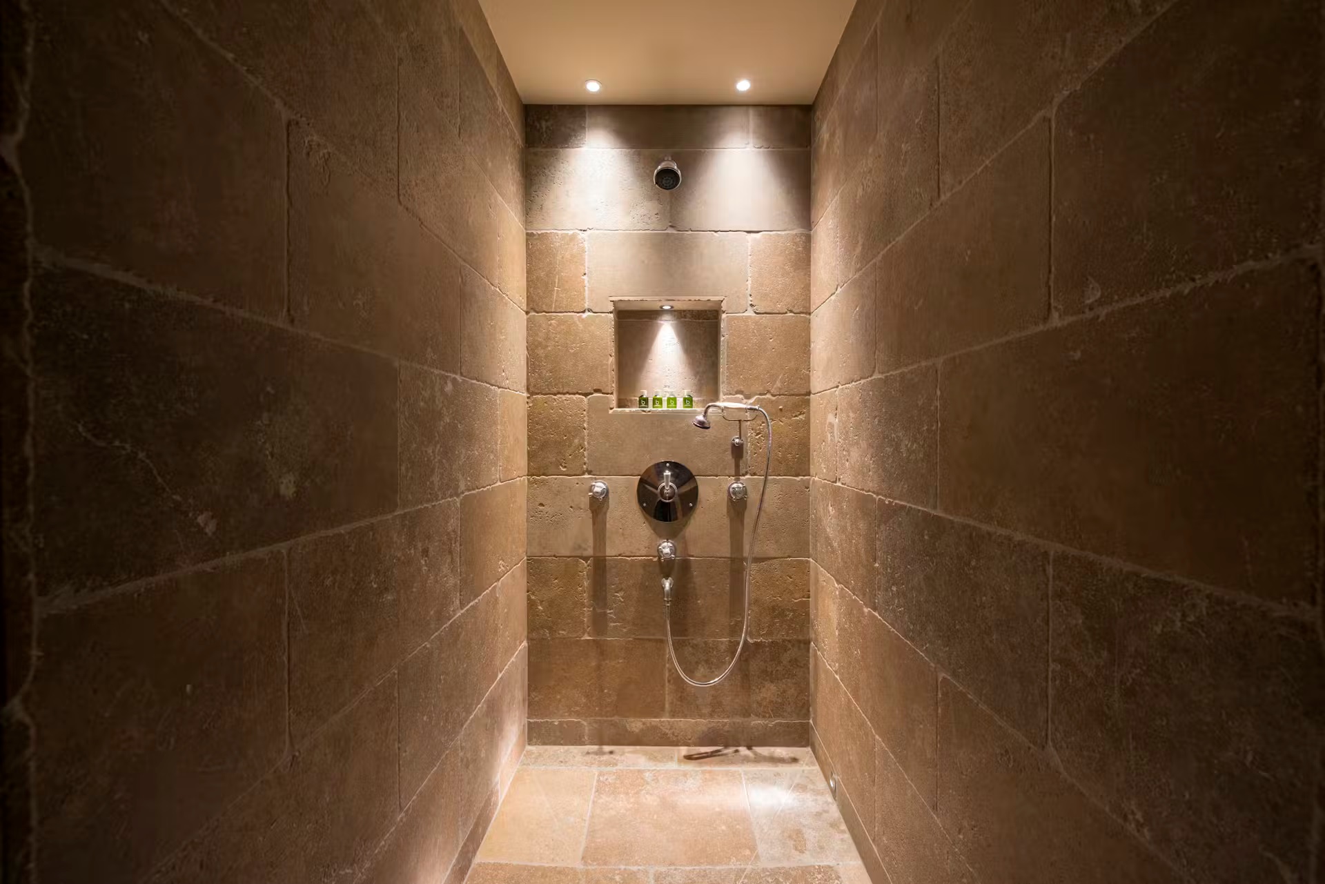 There are 9 bedrooms in total, sleeping 16 adults and 4 children. All the bedrooms come with an en-suite bath or shower room and each bedroom has access to a terrace or balcony, to truly marvel at the wondrous views. There are 8 double bedrooms, of which all but the stunning master suite can also be configured as twin rooms, providing total flexibility for large groups of mixed guests. Using cool colors, natural woods and soft beds, these rooms form an inviting and calming ambiance for all guests to enjoy. The final bedroom is a children’s bunk room for four, with custom-built beds and beanbags for a fun and cozy vibe.