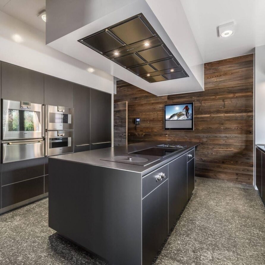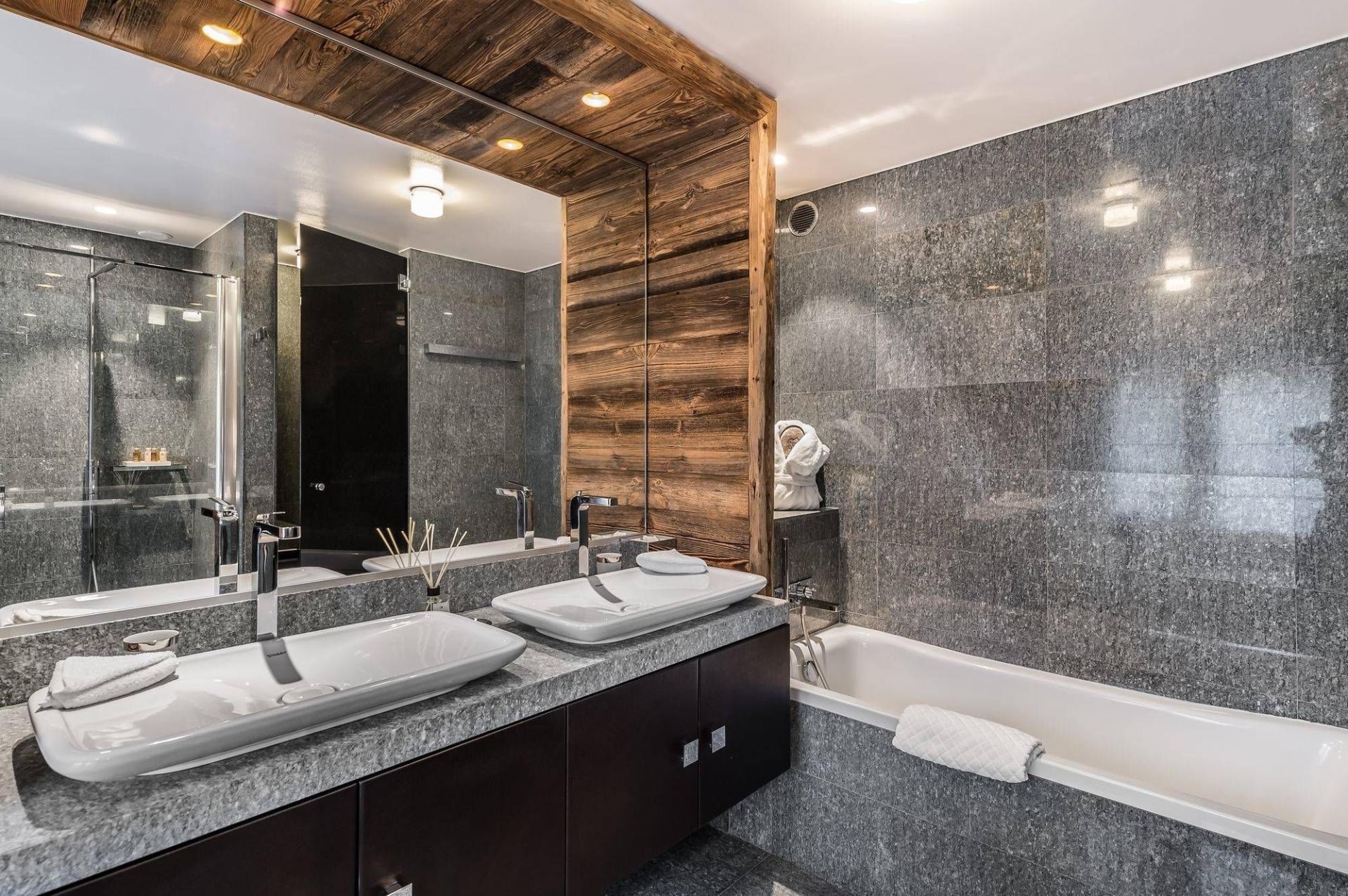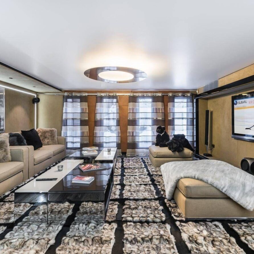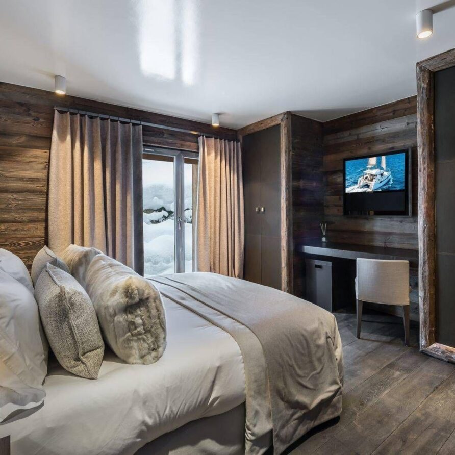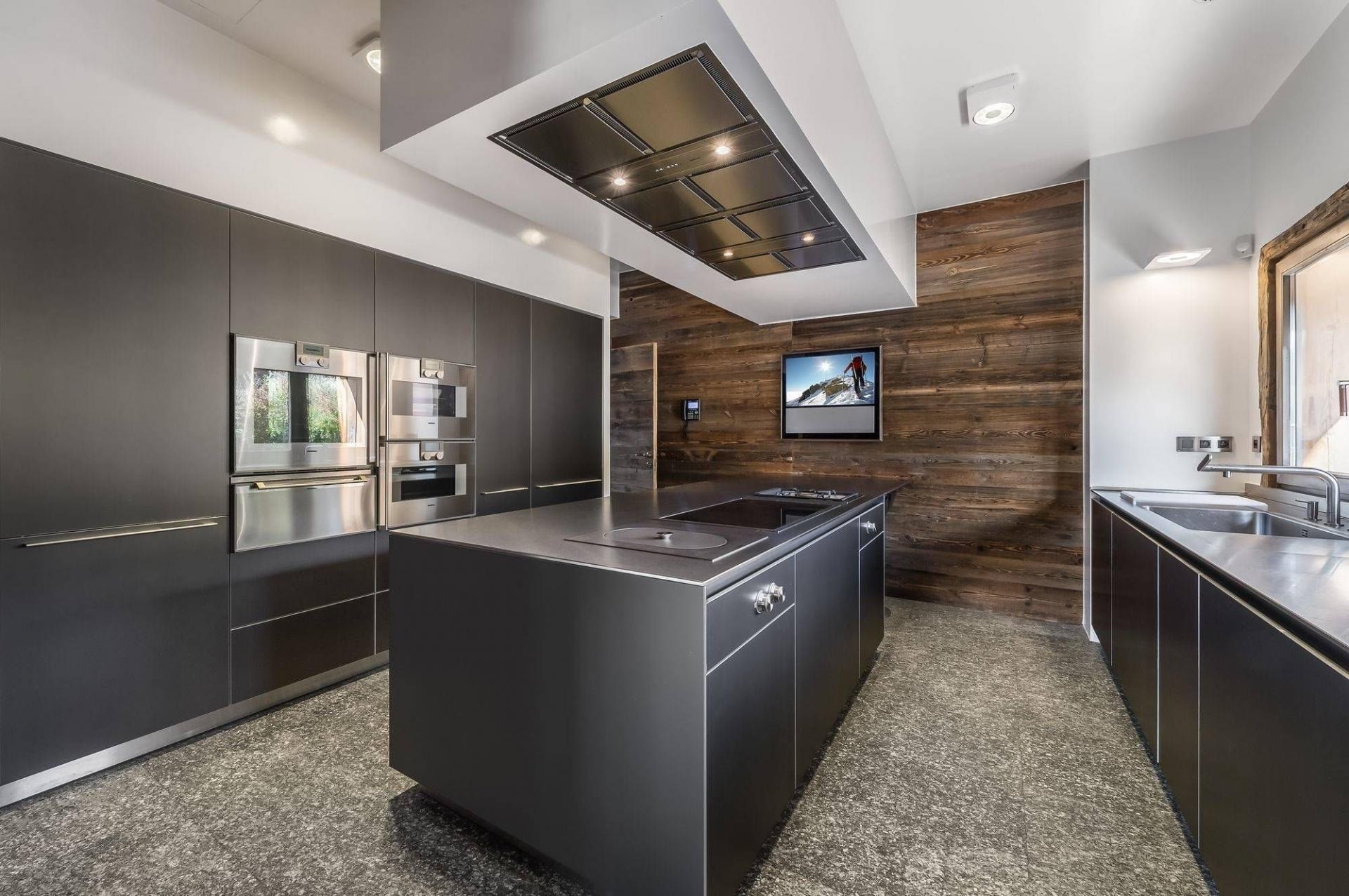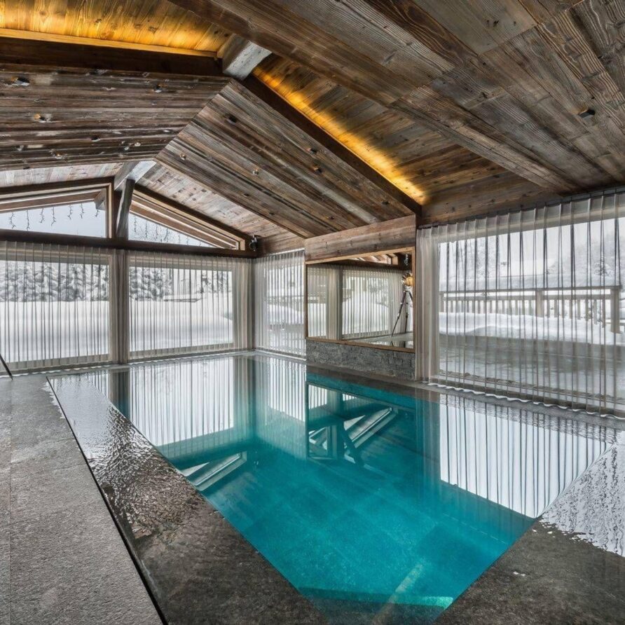 The chalet wonderfully blends traditional design and materials with modern style and futuristic facilities. The main living and dining area is huge and hugely impressive and design excellence. A concert grand piano catches the eye first, before comfortable seating, a wood-burning fire and a big, big dining table draw you in to a space that just invites you to relax. Super-high ceilings make the most of the light that floods in through huge windows, opening out onto terraces with woodland and mountain views.