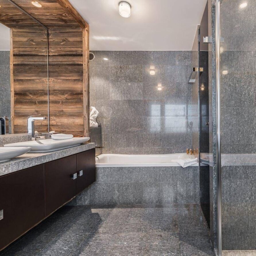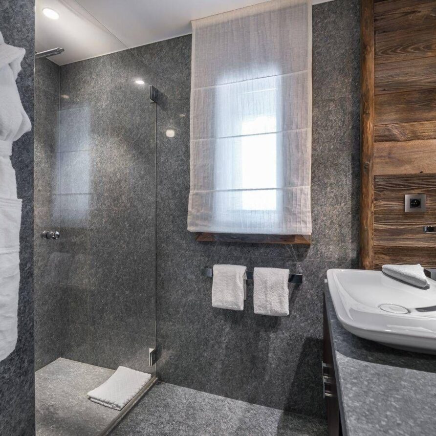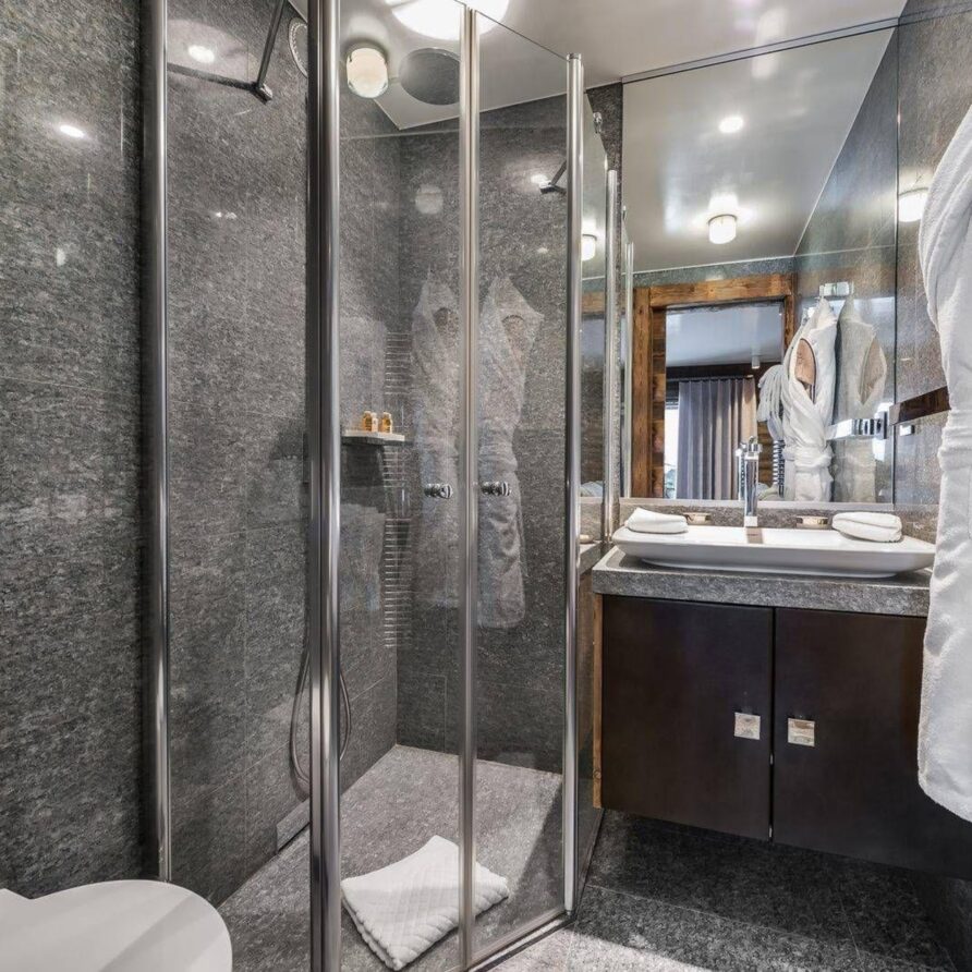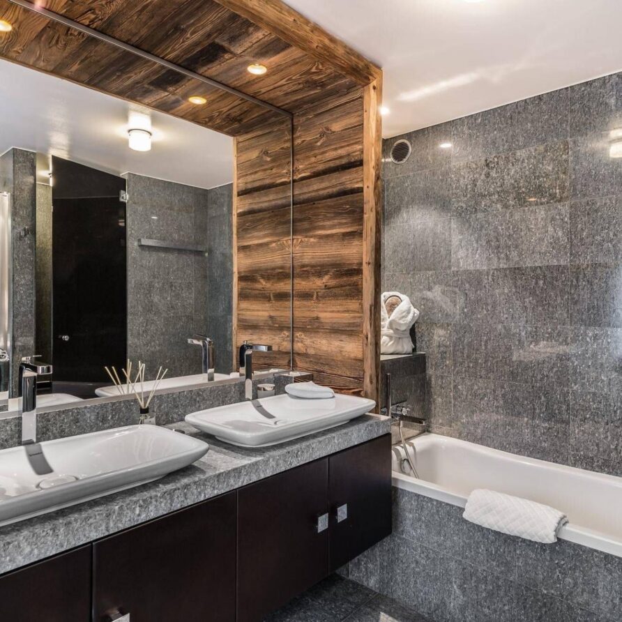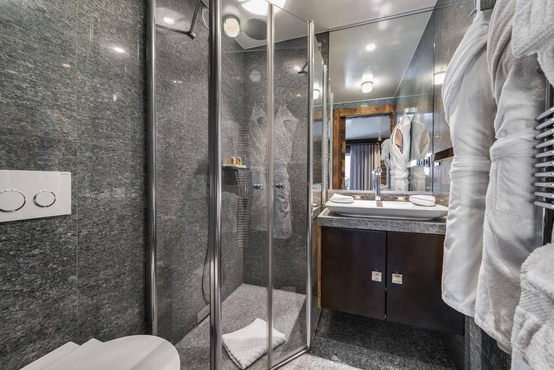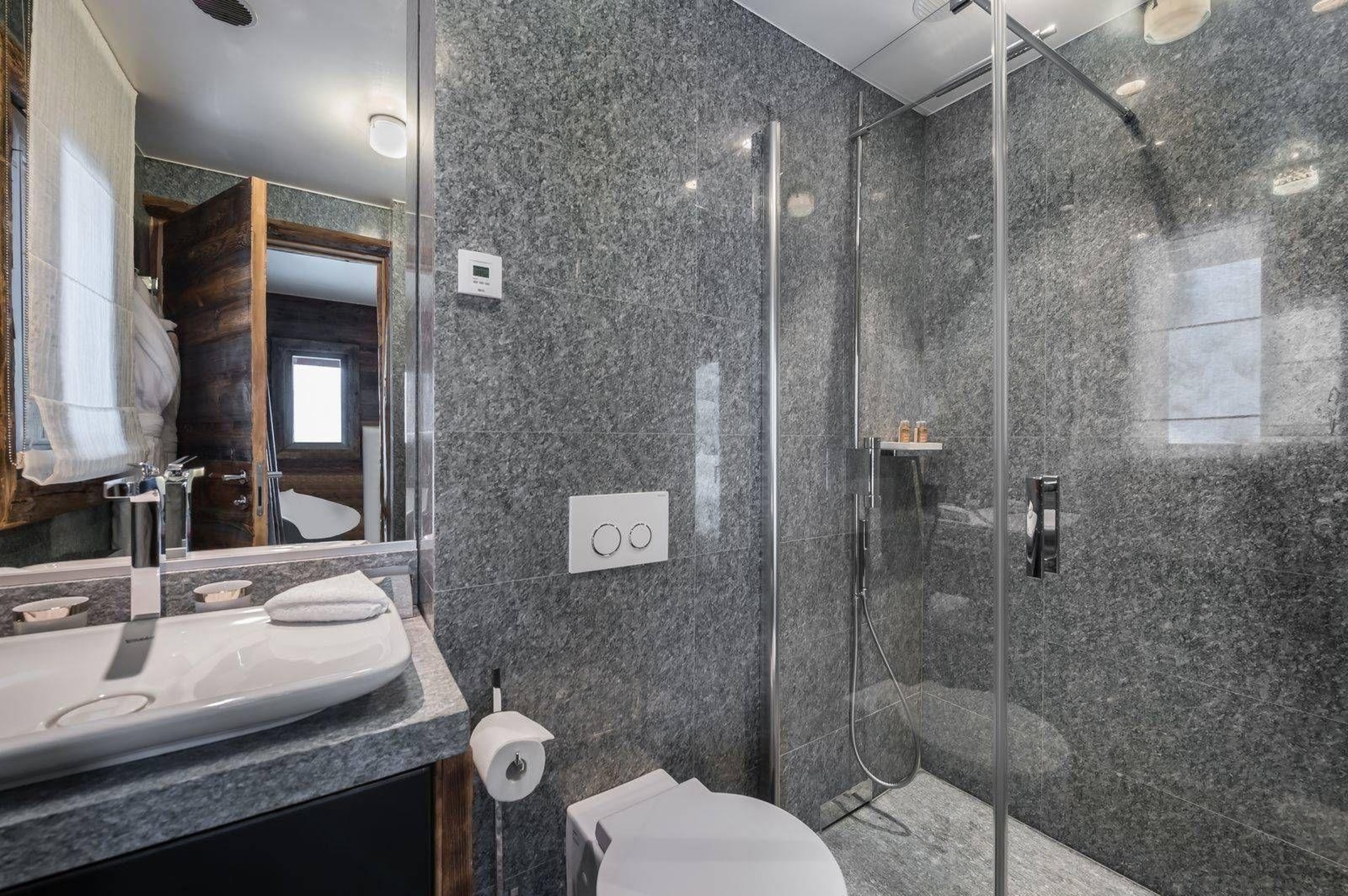 The chalet wonderfully blends traditional design and materials with modern style and futuristic facilities. The main living and dining area is huge and hugely impressive and design excellence. A concert grand piano catches the eye first, before comfortable seating, a wood-burning fire and a big, big dining table draw you in to a space that just invites you to relax. Super-high ceilings make the most of the light that floods in through huge windows, opening out onto terraces with woodland and mountain views.