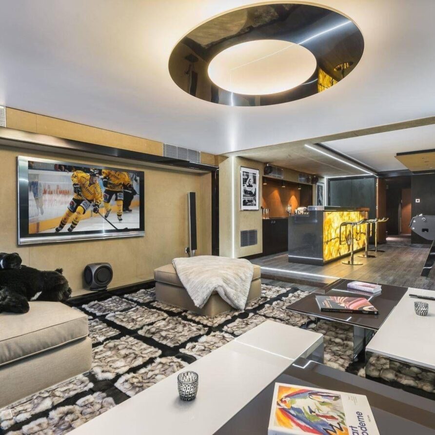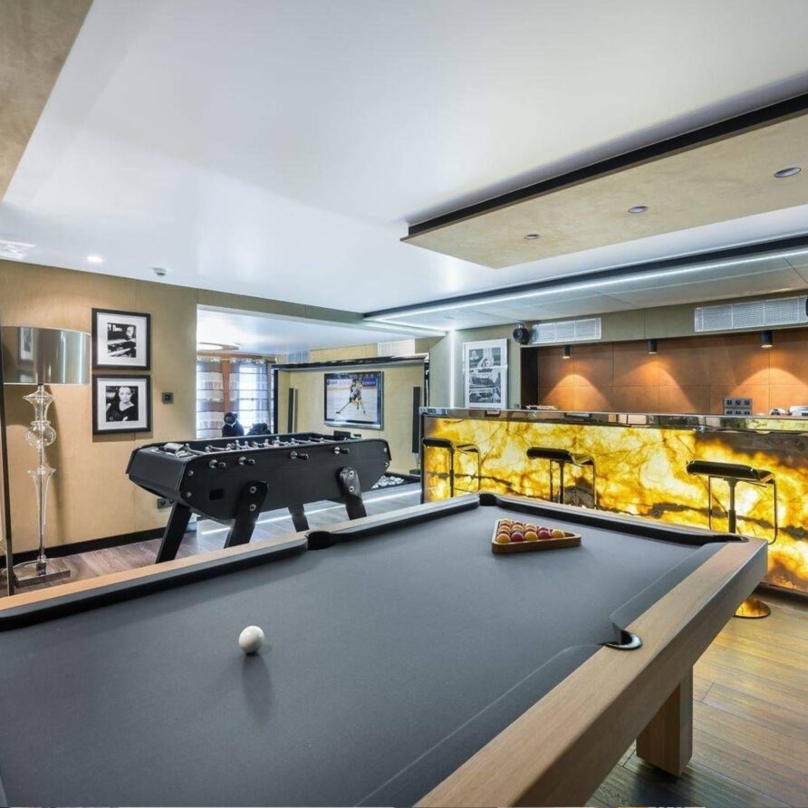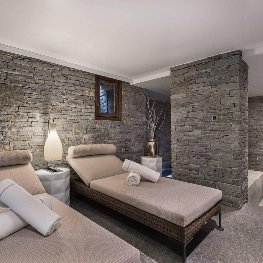 A party of 12 can enjoy this massive property, with adults enjoying four superb en-suite double bedrooms. All the rooms are individually styled, but share the same theme – luxury and relaxation, with muted colors, soft furs and fabrics, and the best quality linens and bathroom products. The master suite boasts a dressing room and a huge screen with Apple TV. The wellness and leisure areas are so extensive that they command a whole floor. A huge Jacuzzi is closer to a small swimming pool in size than a bath, and a mineral spa is complemented by a North African-style hammam steam room.