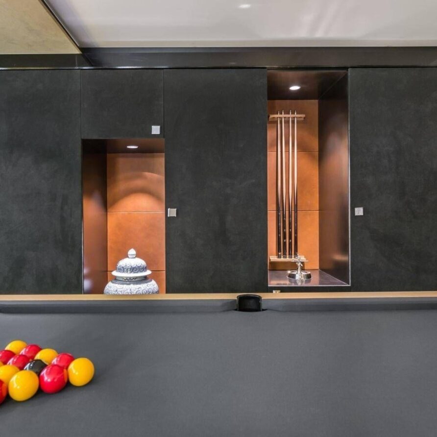 A gym will help you stay in trim, and when you just want to turn off you can tune in to the TV room or rediscover your inner child in the brilliantly equipped games room, with table football and pool the games menu. The cinema room really lives up to its name, with an enormous screen on which to enjoy the latest movies. The audio-visual equipment includes Sky TV, Apple TV, TV and Wi-Fi throughout. A smart, compact office is the place to head when you do need to check your messages.