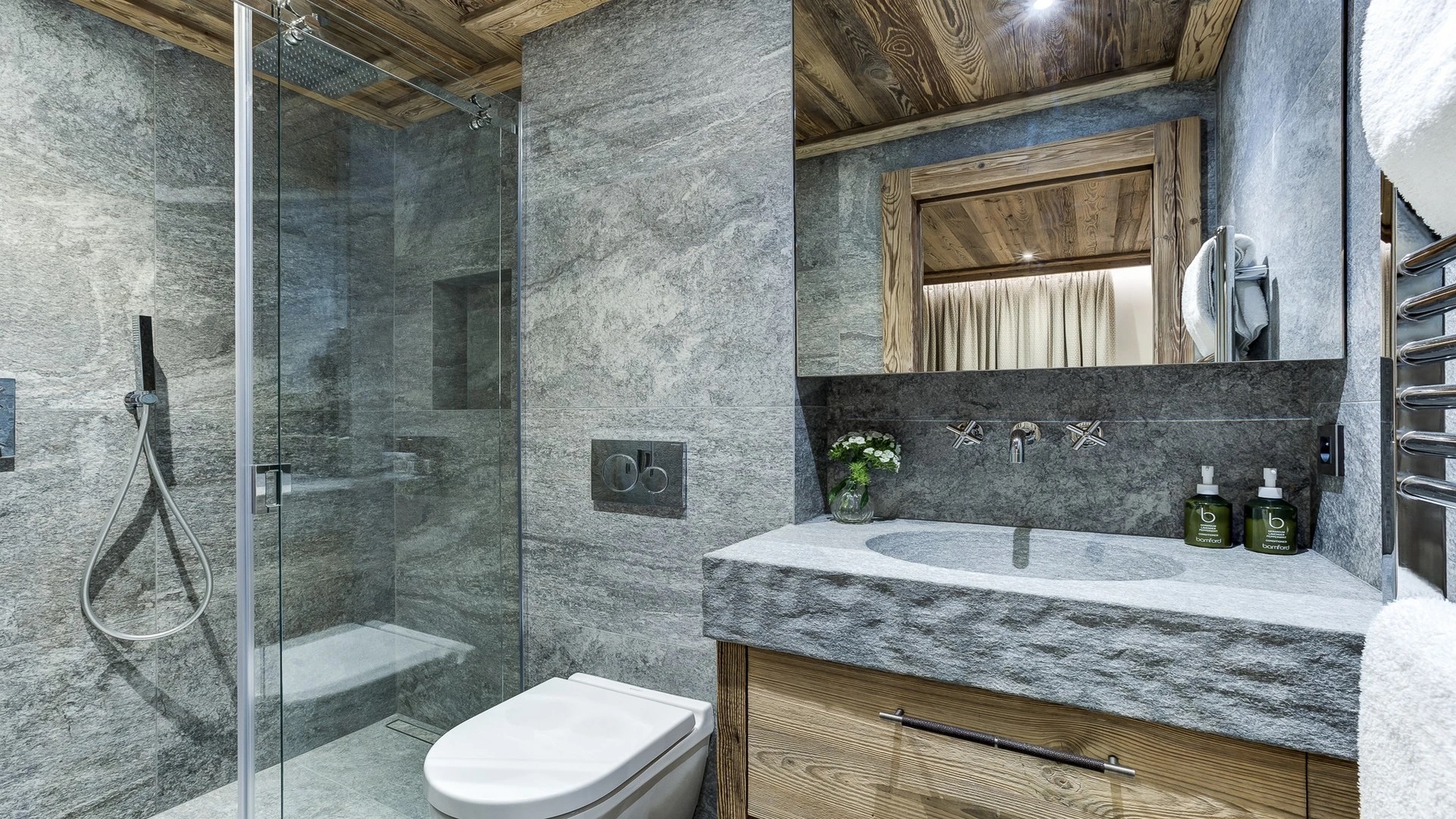 Sleeping quarters span both floors, offering a haven of tranquillity. The master Suite boasts a lavish marble en-suite bathroom, while four double bedrooms each feature en-suite facilities, exuding alpine charm with a modern twist. A children’s bunk bedroom accommodating up to six guests with its cozy ambiance and en-suite convenience.