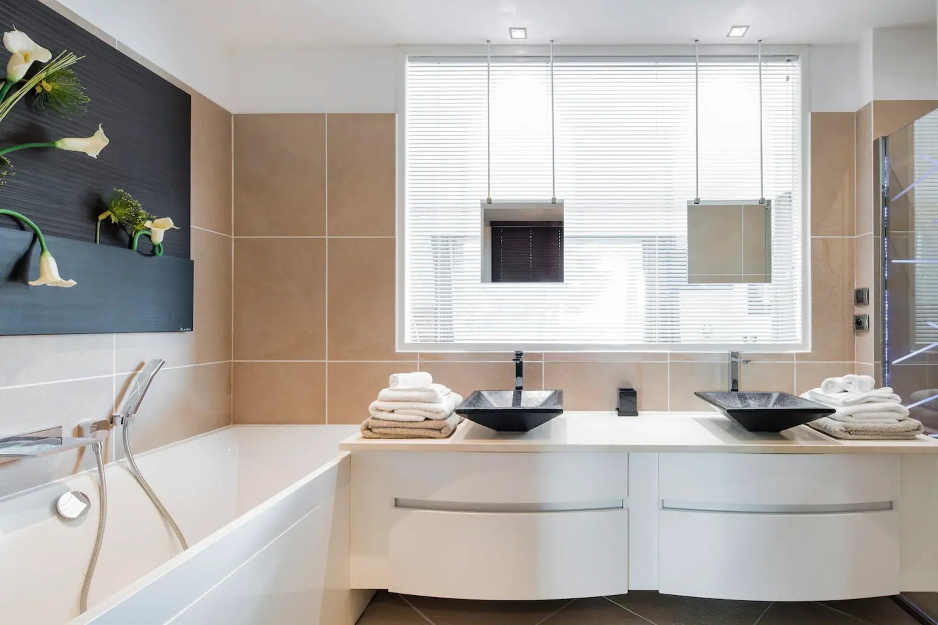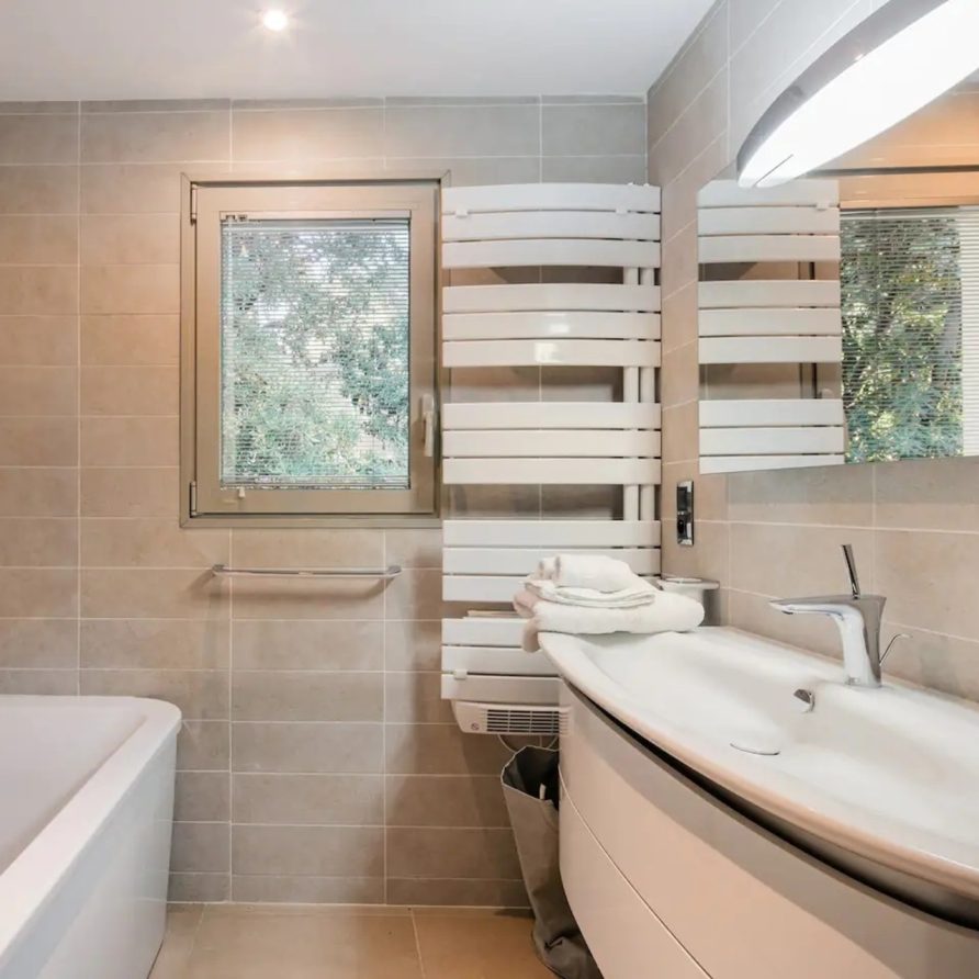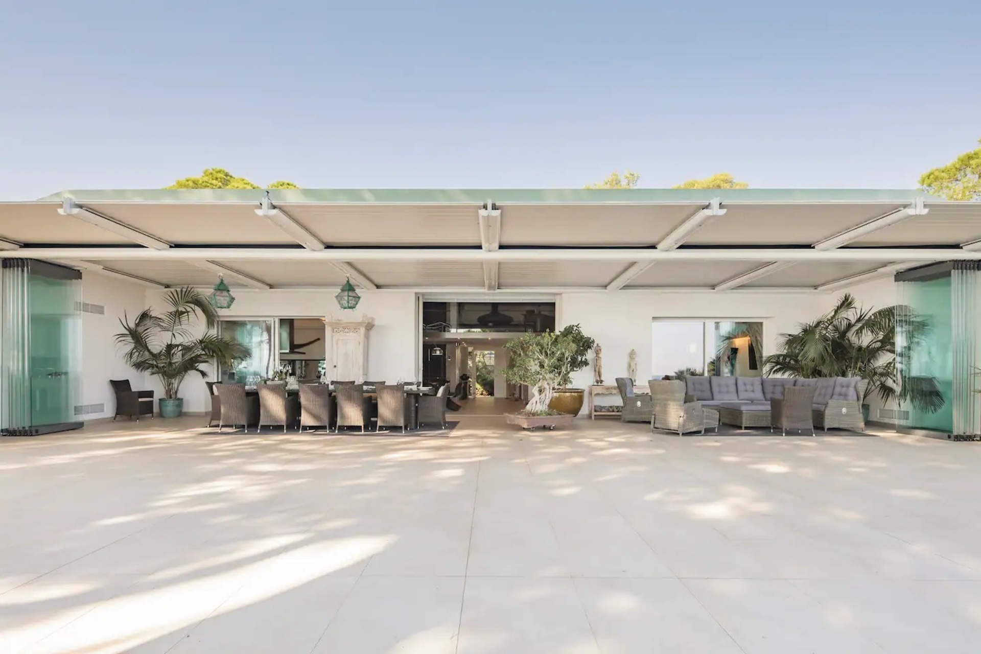 - Amenities: Bathroom essentials, BBQ, Bedroom comforts, Cable channels, CD player, Cinema Room, Coffee machine, Dishwasher, Dryer, DVD Player, Free parking, Gym, Hair dryer, Heating, High chair, Hot tub, Ironing facilities, Kitchen, Linens, Loungers, Microwave, Oven, Pool, Refrigerator, Soundproof, Stovetop, Tea/Coffee maker, Terrace, Toaster, Towels, TV, Washing machine, Wi-Fi