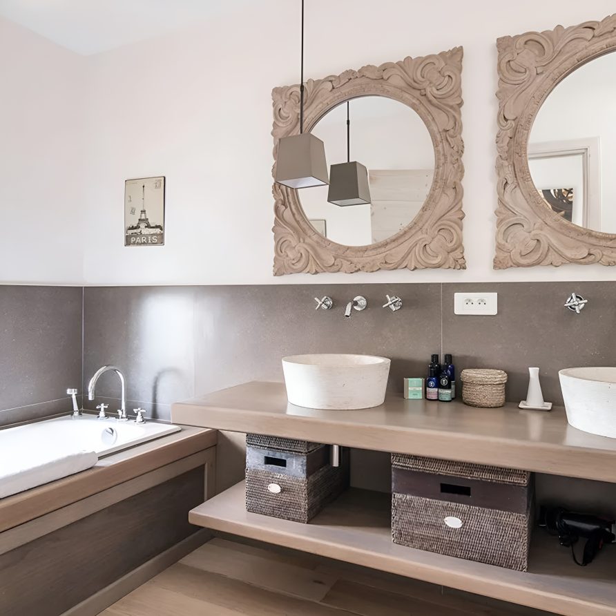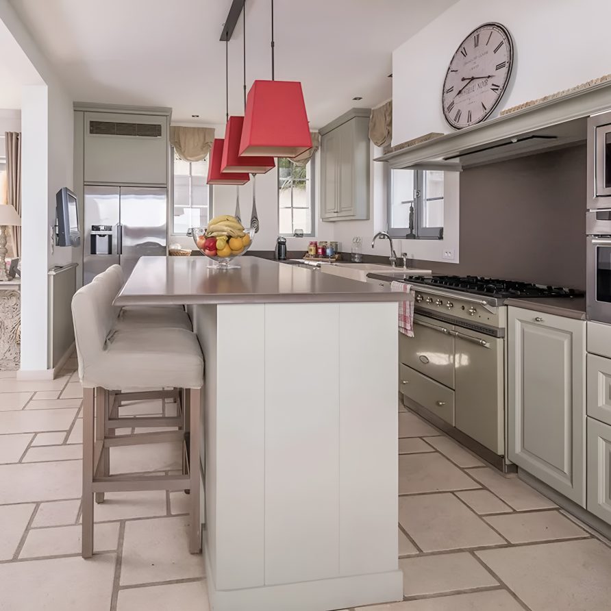 In total, the villa can accommodate 12 guests across 6 spacious bedrooms found on the lower and ground floors of the property. All bedrooms benefit from king-size double beds and en-suite facilities, and the majority also feature balcony/terrace access. 4 bedrooms are situated on the villa’s ground floor, with 2 remaining bedrooms on the lower ground floor. The master bedroom comes complete with balcony access, a dressing room and an en-suite bathroom with separate shower.